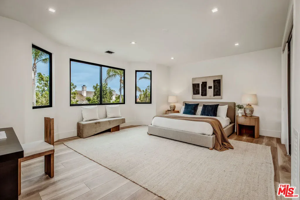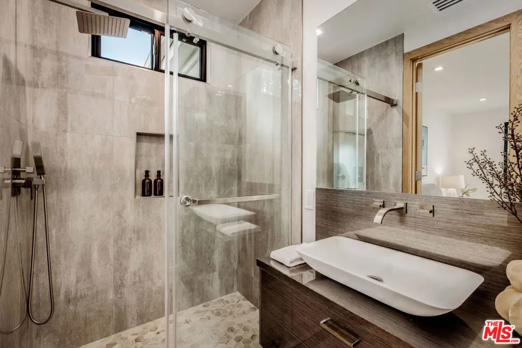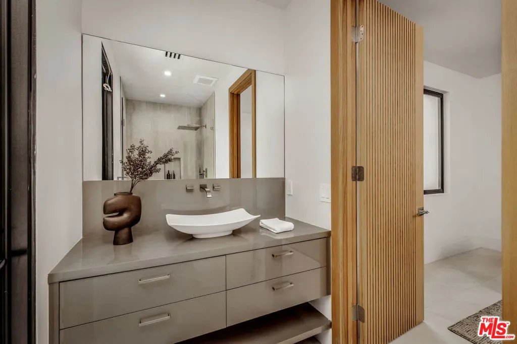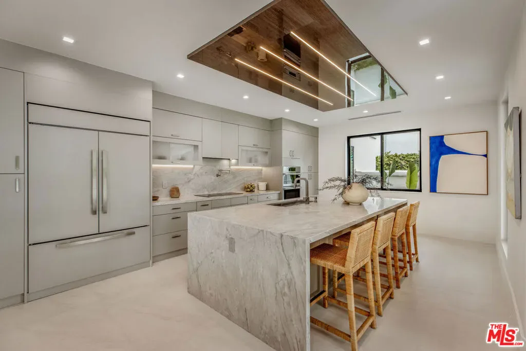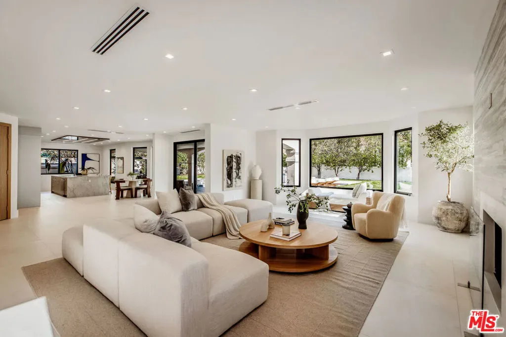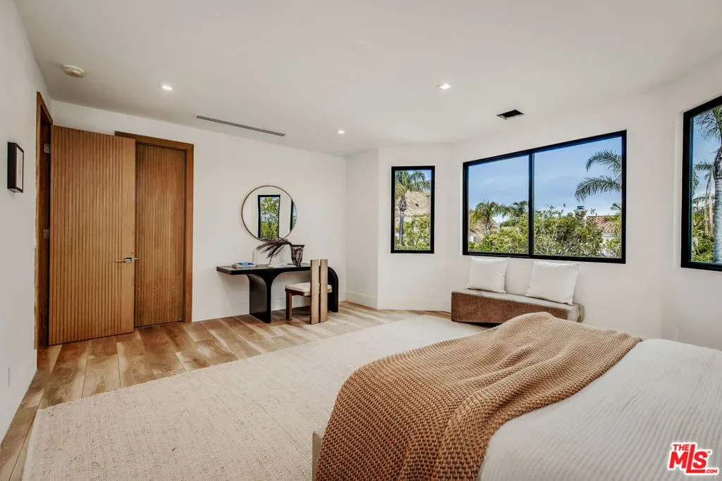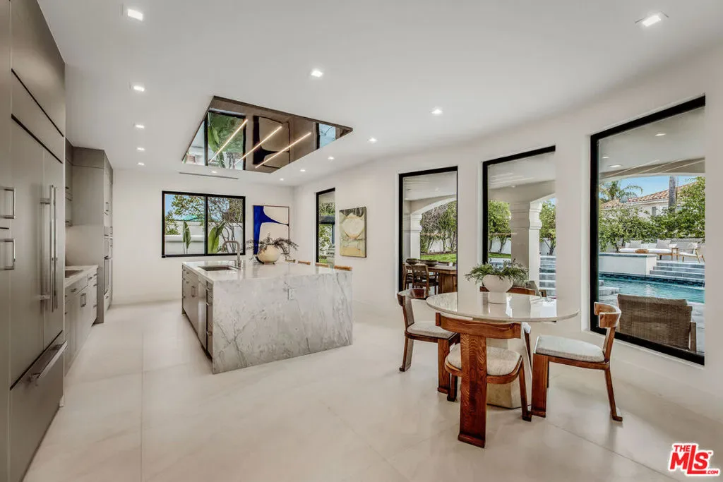 Newly completed 2026 designer remodel in guard-gated Mountain View Estates, adjacent to Hidden Hills. Set on a quiet cul-de-sac, this ELM Studio Homes renovation, designed and built by ELM Studio Homes, blends modern architecture with warm, organic finishes. A striking pivot entry opens to a dramatic two-story foyer, anchored by custom wood detailing and clean, contemporary lines throughout. The state-of-the-art kitchen features a waterfall stone island, integrated appliances, and opens seamlessly to the family room with a floor-to-ceiling travertine fireplace and indoor-outdoor flow. Formal living and dining spaces are refined yet inviting. The expansive primary suite offers a private terrace, a fireplace, and a spa-inspired bath with dual vanities, a soaking tub, and an oversized shower. Resort-style grounds include a pool, lounge areas, and a basketball court, creating a true entertainer’s setting. Located moments from award-winning Las Virgenes schools, dining, and Malibu beaches.