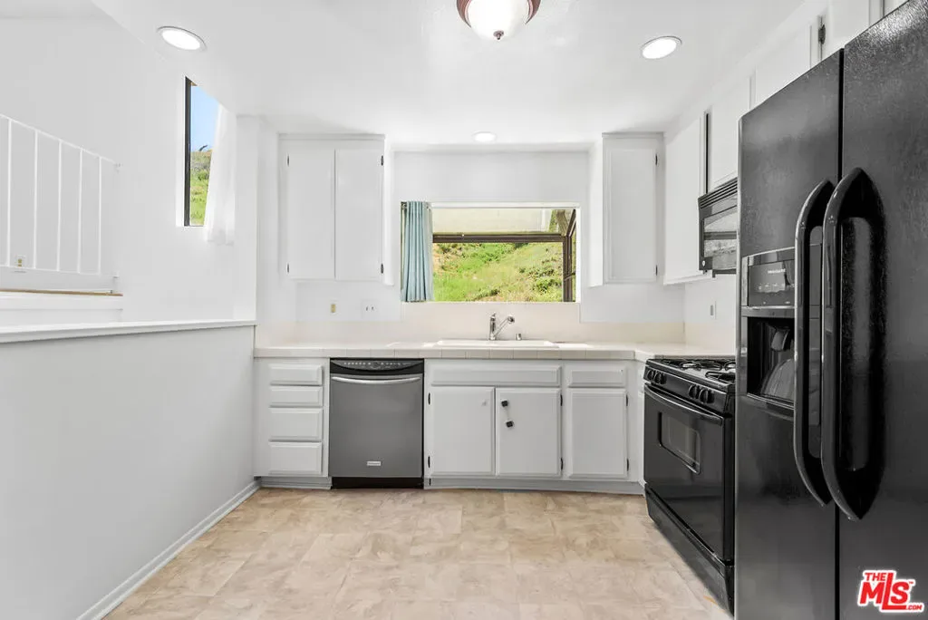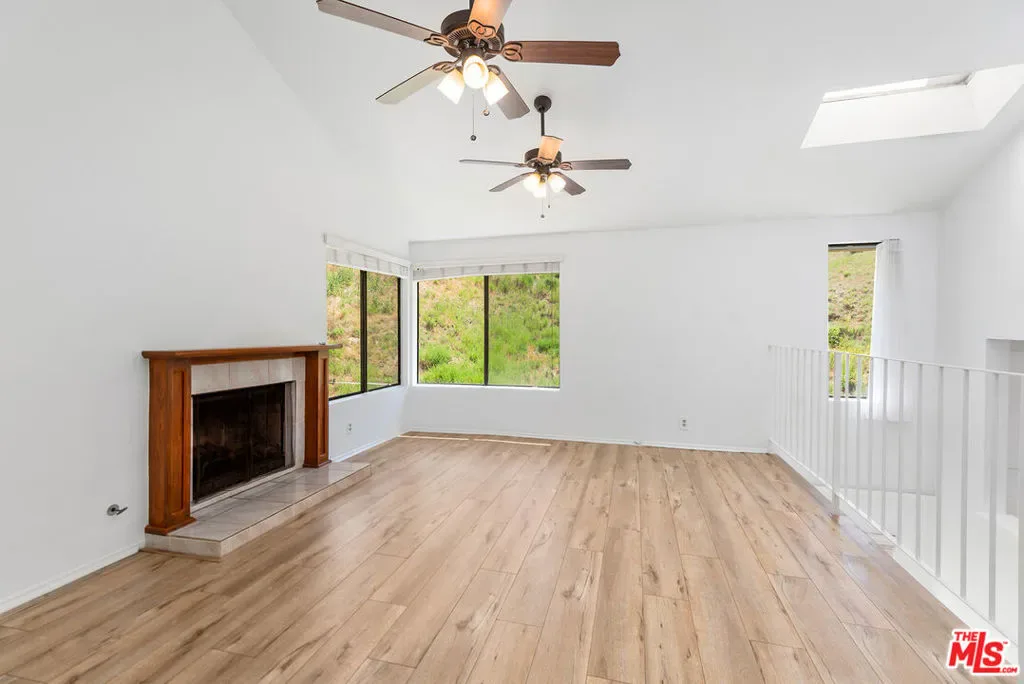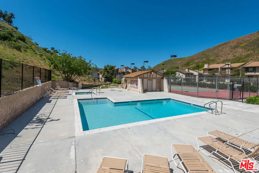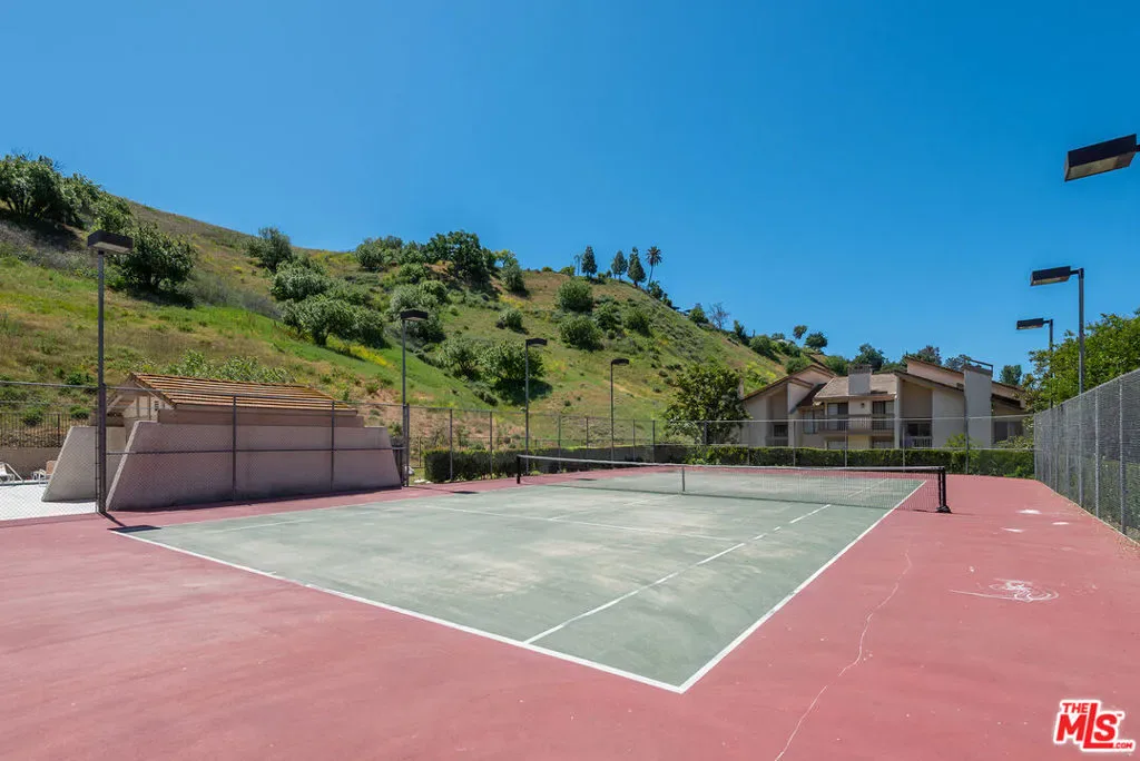 Beautiful 3-bedroom, 2-bathroom end unit townhome, in the highly desirable Alizia Canyon community in Calabasas. This internally located unit offers a great open floorplan with tons of natural light, vaulted ceilings, both living and family rooms, skylights, sliding glass doors, and outdoor space. An open entry welcomes you into a spacious living room overlooking the front patio. The spacious mid-level den features a cozy fireplace and sliding doors to a balcony with beautiful canyon views. A spacious kitchen boasts a greenhouse window that overlooks the lush hillside, ample cabinetry, and adjacent dining area. One bedroom and bathroom are also located downstairs. Upstairs, there are two additional well sized bedrooms that share a bathroom. Unit also includes newly installed HVAC and heat pump and an attached 2-car garage. Amenities include a pool, spa, tennis courts, and paths. Short drive into Calabasas or head to the inviting beaches of Malibu! Located in the award-winning Las Virgenes school district.