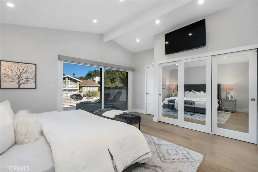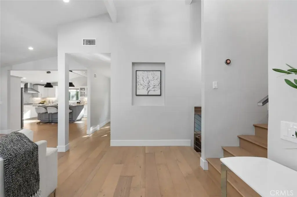 Experience the ultimate in modern luxury in the heart of Calabasas’s coveted Mulwood neighborhood. This masterfully remodeled 4-bedroom residence features a light-filled, open-concept floor plan including a gourmet chef’s kitchen with a center island and farmhouse sink! The living room has a lovely bar, white oak wide plank floors and cozy fireplace, and a beautiful dining room nearby. Upstairs, the primary retreat is a true sanctuary, offering a private deck, separate spacious closets, and a spa-like ensuite with a floating tub and walk-in shower. The upper level includes two additional bedrooms, while the lower level features a fourth bedroom and bath, as well as an incredible bonus room—perfect as a 5th bedroom, home office, or gym with access to the wonderful patio and yard. All three bathrooms have been updated with modern finishes. Step outside to a resort-style backyard oasis, complete with a BBQ area, sport court, putting green, and a relaxing jacuzzi. This property also has a fully integrated smart home powered by enterprise-grade Ruckus networking, Lutron lighting, and seamless shade automation, an updated electrical panel, EV charger and tankless water heater. Located in an award-winning school district and just minutes from the best of Calabasas, this home offers the perfect blend of style and recreation.