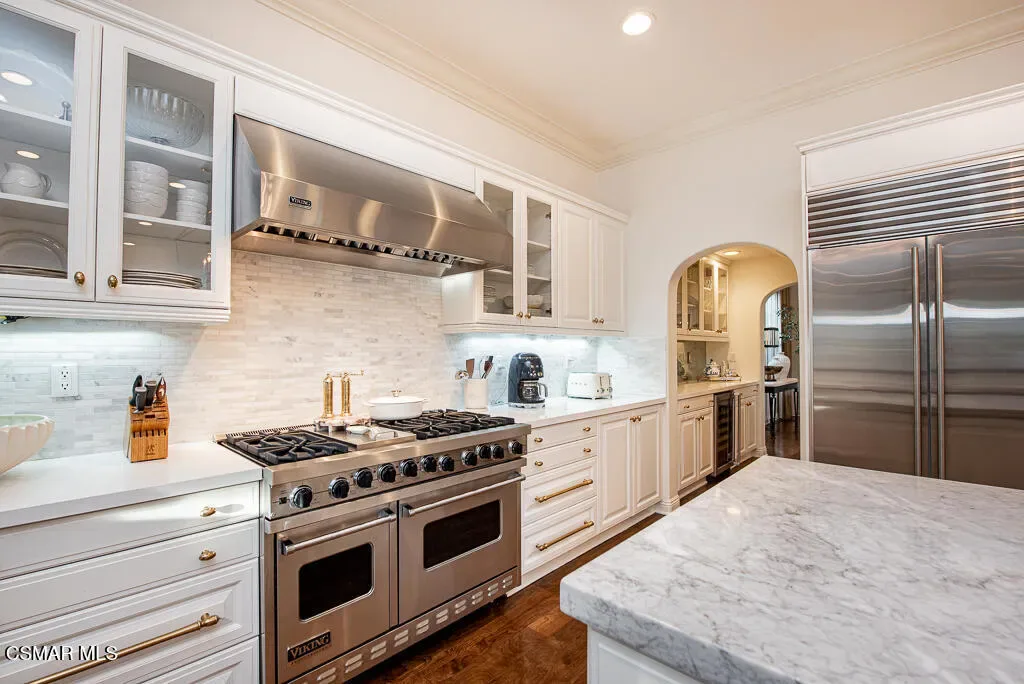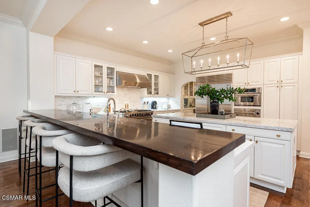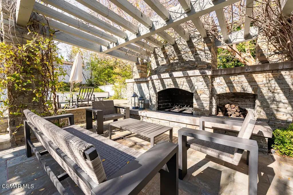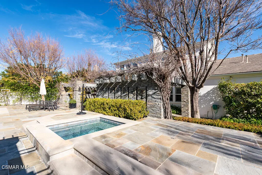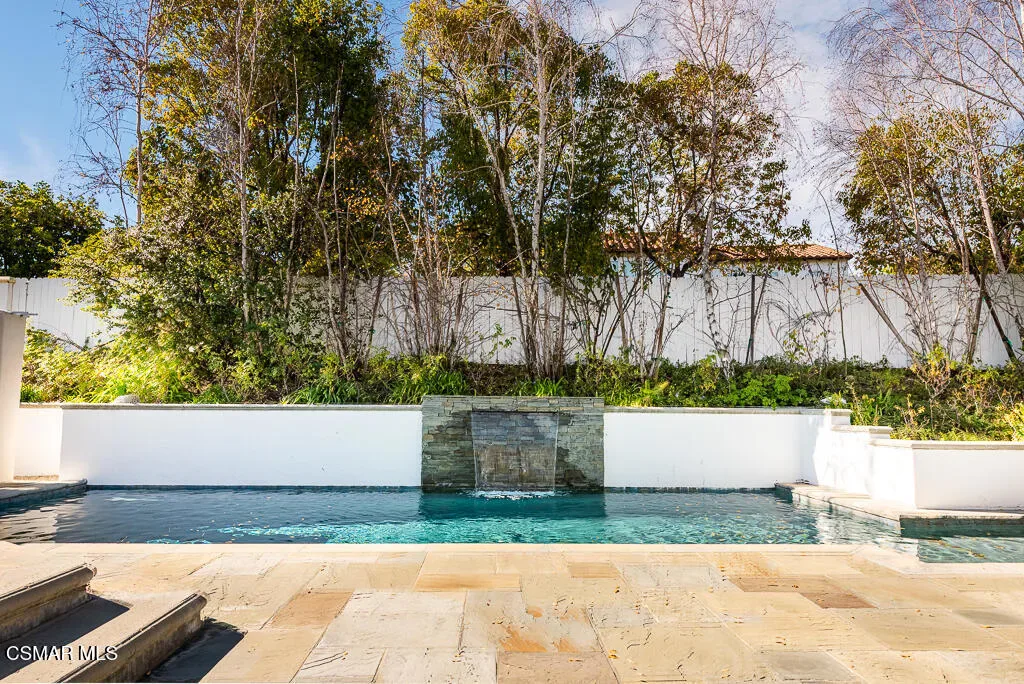 An East Coast-inspired traditional, beautifully designed for a glamorous Southern California summer.Dark wood floors and crisp white walls create a striking, gallery like backdrop for the home’s bold, curated style. A formal living room and a gracious private office open to an intimate courtyard, setting a dramatic tone the moment you arrive. The formal dining room, framed by French doors, flows effortlessly to the patio and tranquil fountain, perfect for unforgettable dinners and celebrations.The all-white chef’s kitchen is anchored by an oversized center island made for everything from champagne brunches to chef-guided dinner parties. A main-level en-suite bedroom and a fireplace-warmed family room open to the backyard, creating seamless indoor-outdoor living.Upstairs, a lounge area joins four bedrooms, including a show-stopping primary suite with its own fireplace and a newly remodeled gray-marble spa bath, your private retreat at the end of every day.Outside, the resort experience continues with a pool and spa, outdoor fireplace and lounge areas, built-in BBQ, and a half court, every space designed for entertaining, relaxing, and living beautifully.Set behind the gates of The Oaks of Calabasas, this residence offers a rare opportunity to enjoy one of Southern California’s most sought-after private communities, known for its privacy, sense of neighborhood, and effortless access to Calabasas’ celebrated dining and shopping, as well as Malibu’s beaches and Beverly Hills.This isn’t just a home. It’s a five-star summer in one of the most coveted enclaves in the Valley.