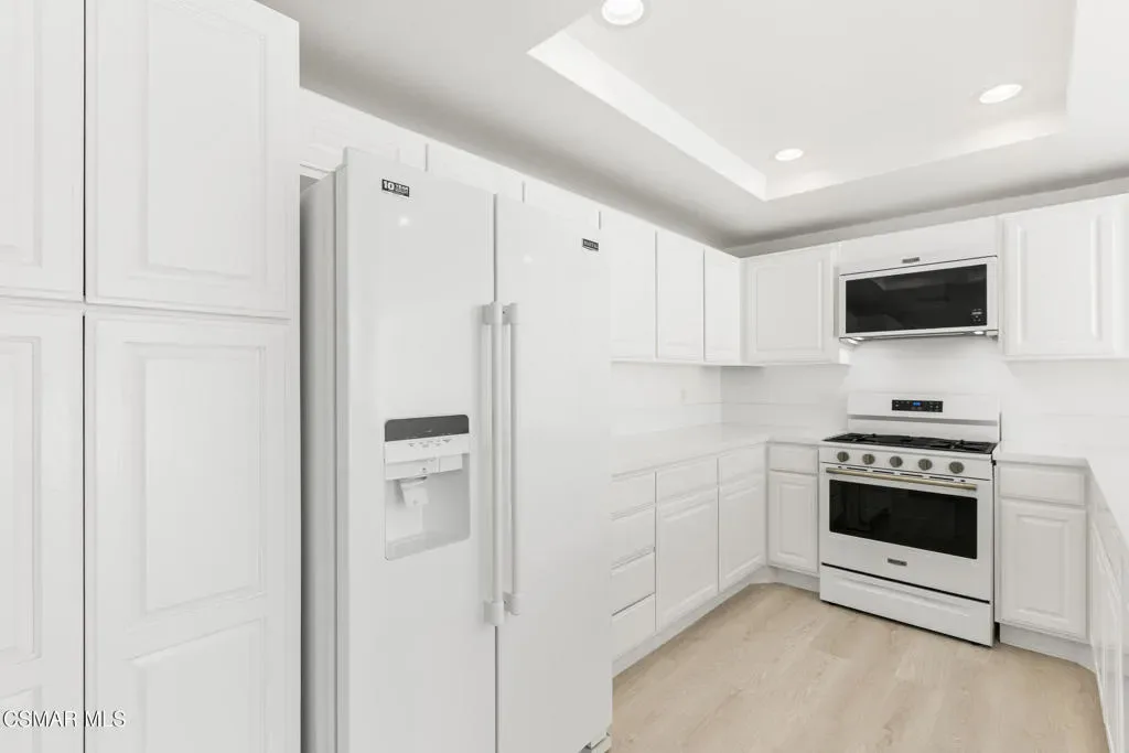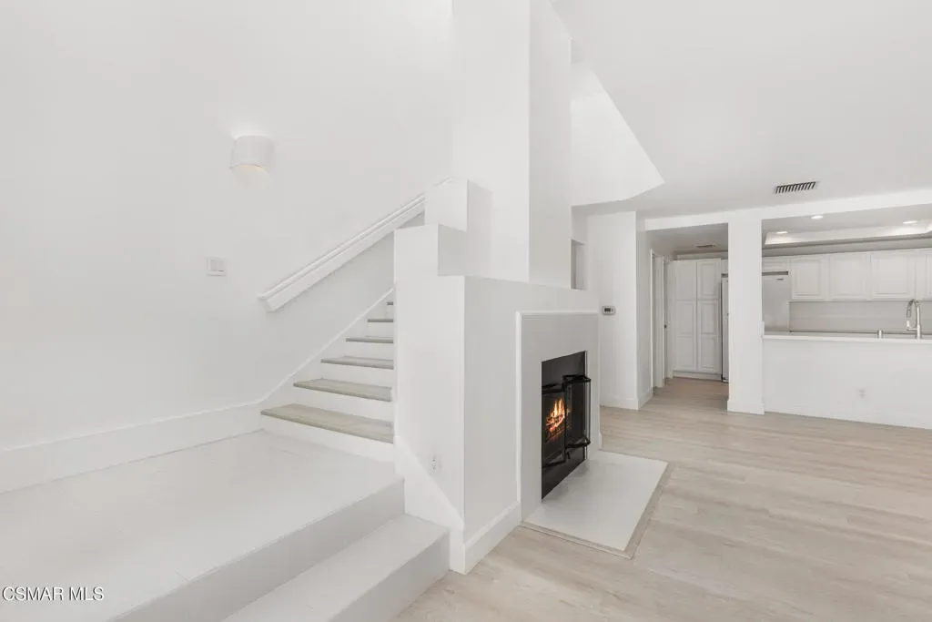 Stunning, fully renovated townhome in the highly sought-after Steeplechase Edinburgh plan, located within a safe and private gated community in Calabasas. This townhome is 100% brand new renovated, offering a truly move-in-ready experience with all brand new appliances, including refrigerator, stove/oven, microwave, dishwasher, along with brand-new bathroom vanities, sinks, fixtures, flooring, and fresh interior paint throughout.The open, light-filled floor plan welcomes you with vaulted skylight ceilings, abundant natural light, and a bright, airy ambiance. The spacious living and dining areas feature a cozy fireplace, perfect for both everyday living and entertaining. The kitchen overlooks the dining area and includes a breakfast bar, matching brand-new appliances, and a generous pantry.Upstairs are two en-suite primary bedrooms with high ceilings and beautifully remodeled bathrooms. The larger primary suite offers dual closets. A guest bathroom and under-stair storage are conveniently located on the main level. The laundry area is discreetly tucked near the two-car direct-access garage. Plenty of guest and community parking available.Enjoy a private patio ideal for morning coffee or evening BBQs. The community offers resort-style amenities including two swimming pools, two spas, a clubhouse with kitchen, fitness center, sauna, and a children’s play area. Ideally located near shopping centers, restaurants, parks, walking trails, with easy access to beaches and Pepperdine University, and within the highly desirable Las Virgenes School District.