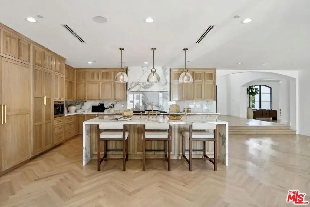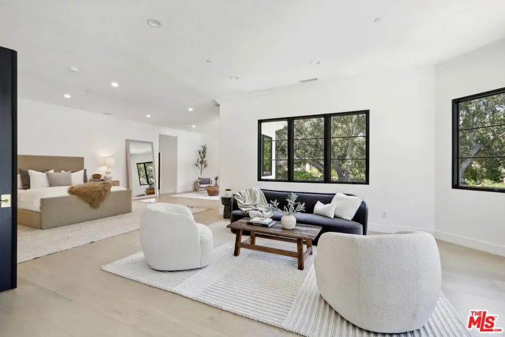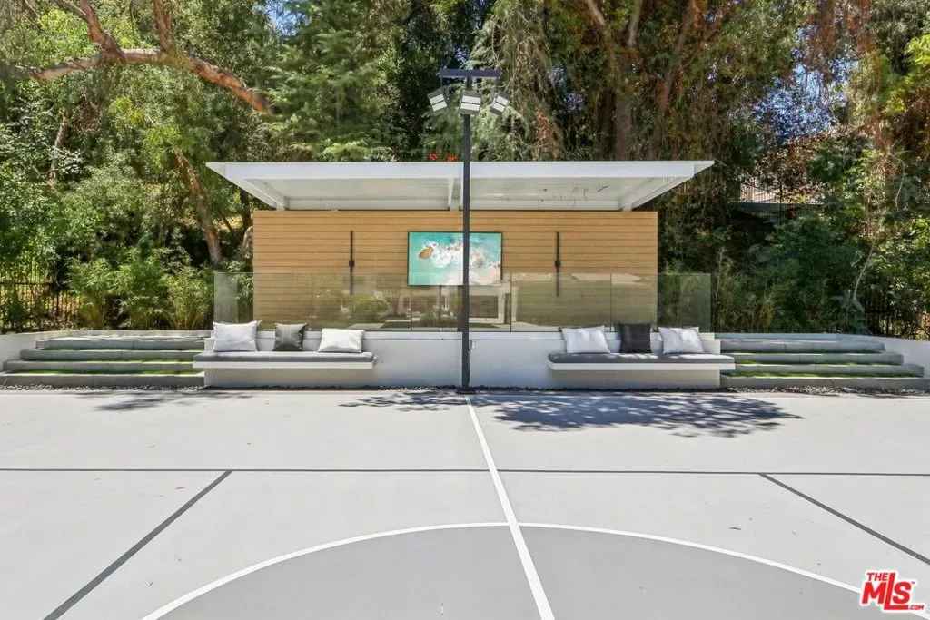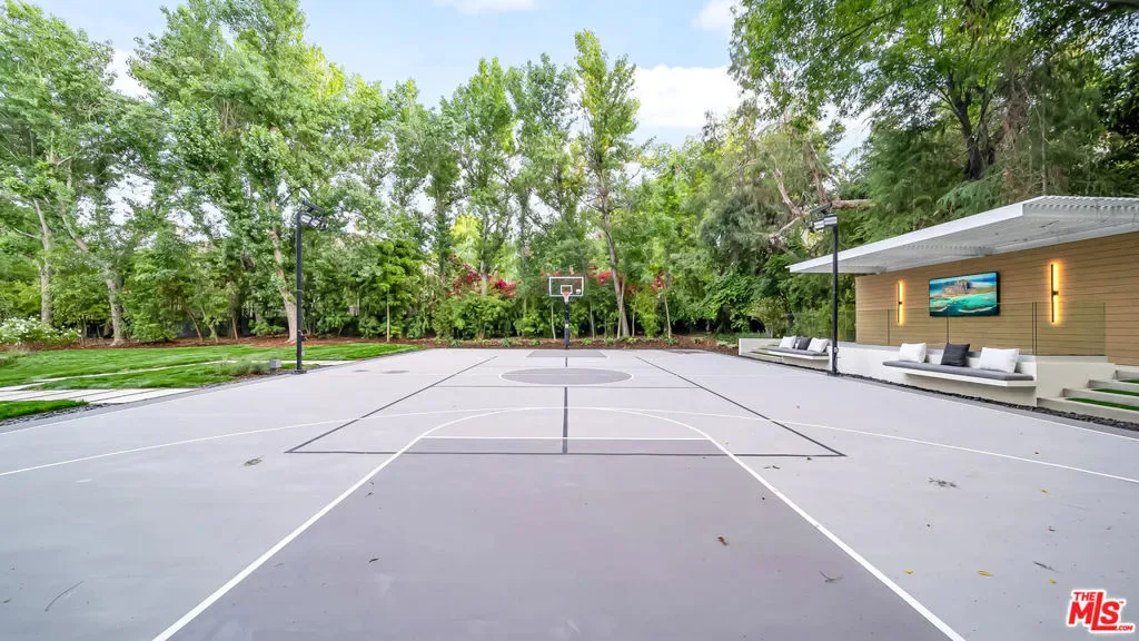 “THE HAVEN” — An Entertainer’s Dream Estate in the Heart of Calabasas. Tucked away at the end of a cul-de-sac in one of most exclusive guard-gated communities of Calabasas, this grand estate is a private sanctuary designed for those who live boldly and entertain lavishly. Set on over one flat acre of lush, secluded grounds, this just-reimagined masterpiece spans 11,257 square feet of unmatched luxury. From the moment you enter, you’re greeted by soaring ceilings, expansive sun-filled spaces, and exquisite craftsmanship throughout. White oak hardwood floors, custom marble fireplaces, and designer finishes elevate every room to a gallery-like experience. Curated for the ultimate lifestyle, the estate features two primary suite retreats, a full-court basketball and pickleball court with pavilion lounge, a state-of-the-art theater, glass-enclosed whiskey and wine bar, and a dedicated billiards lounge. Entertain effortlessly in the showstopping gourmet kitchen, host guests fireside in the sunken outdoor fire lounge, or unwind on the putting green under the stars. The resort-style outdoor amenities continue with a sleek bar and kitchen pavilion, manicured grounds, and mature trees offering total privacy and tranquility. The guest home boasts 2 bedrooms with ensuite bathrooms, a full kitchen, and livingroom that doubles as a lavish pool cabana. THE HAVEN is a rare offering of this scale, sophistication, and serene setting. This is more than a home. It’s a destination.