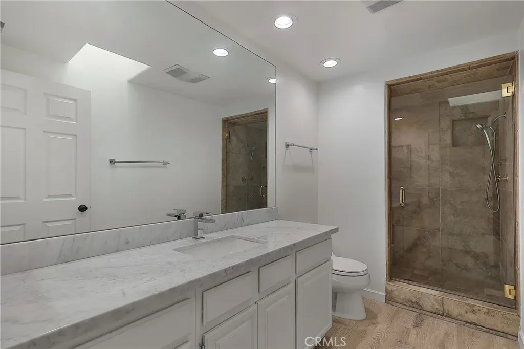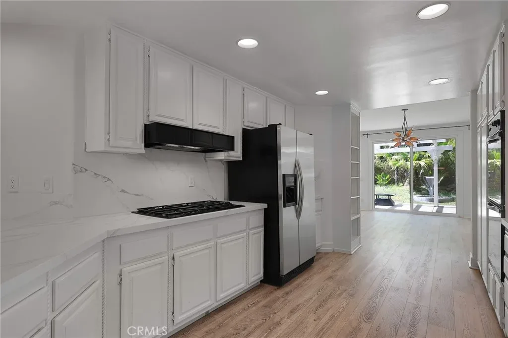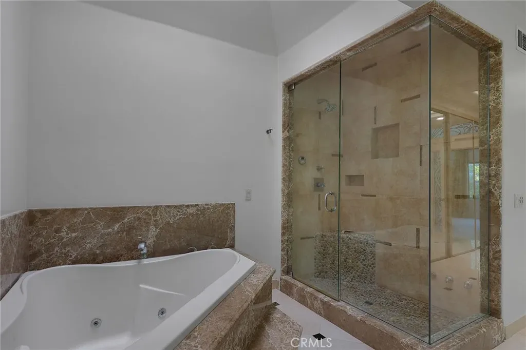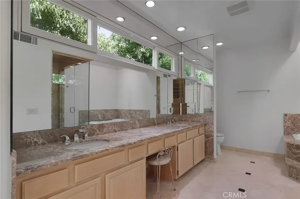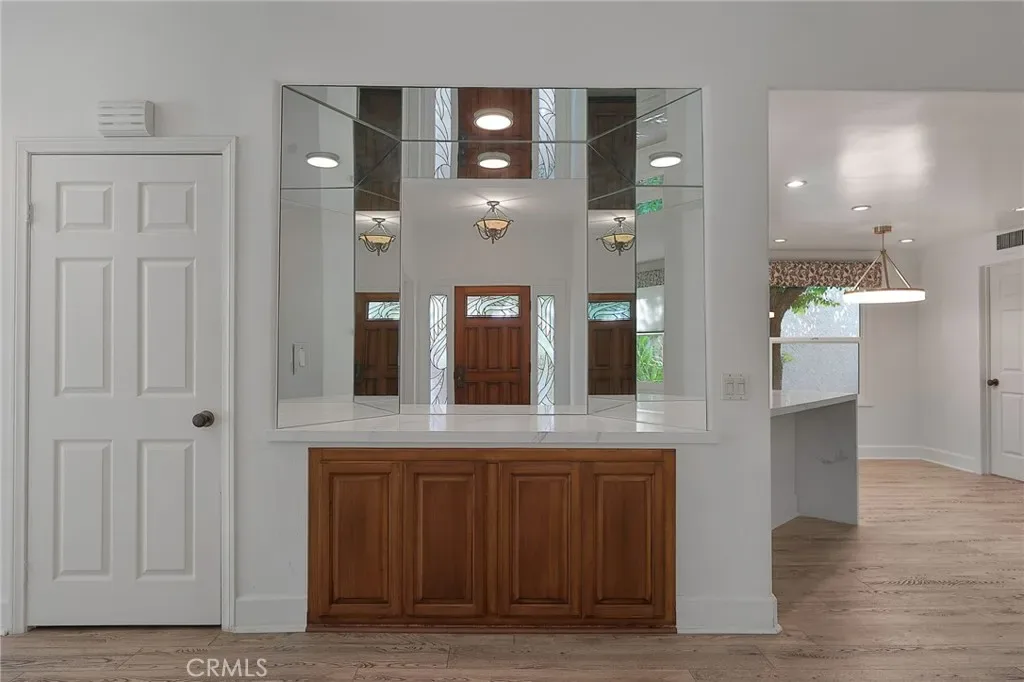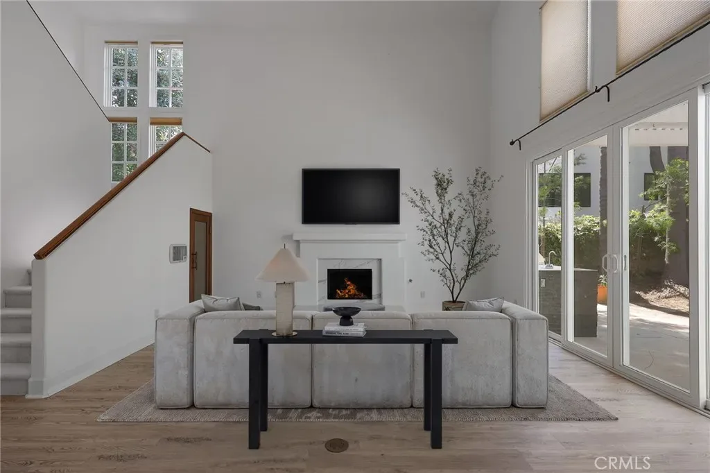 Done with the finest of taste, shows like a model home! Grand entry, luxury Vinyl wood like floors throughout. High ceilings,recessed lighting throughout. The Kitchen has new counters all thru out and has tons of storage and newer appliances and with a breakfast counter. Three bedrooms and bonus room up stairs which can be used as a den,office. .There is also a downstairs room which can be used as a office, with its own entrance.! There is a formal dining room , den area ,and impressive great room / living room with Fire and Ice glass fireplace and wine closet. Newer sliders lead out to the lovely garden with patio,barbecue center ,and state of the art Dimension One Spa and fountains,also makes this a tranquil garden. Upstairs has high ceilings. There is an elegant large Primary suite, with two custom large closets. Primary bath is custom built with marble slabs counters with spa type tub,and steam shower. Upstairs also has a a large bonus room , that can be a great room,office, or kids playroom. There are two other bedrooms adjacent to a redone bathroom. All bedrooms are done with designer window treatments. Includes washer dryer. Included is a laundry room in the home. Close to the Calabasas Lake .