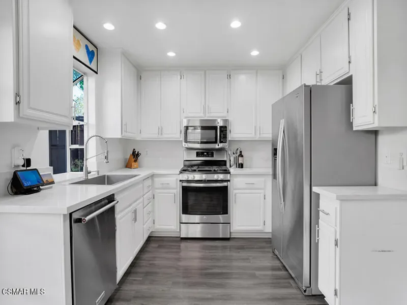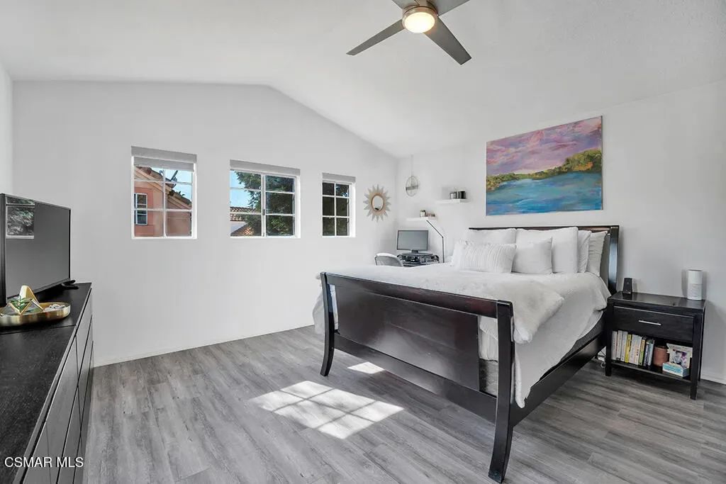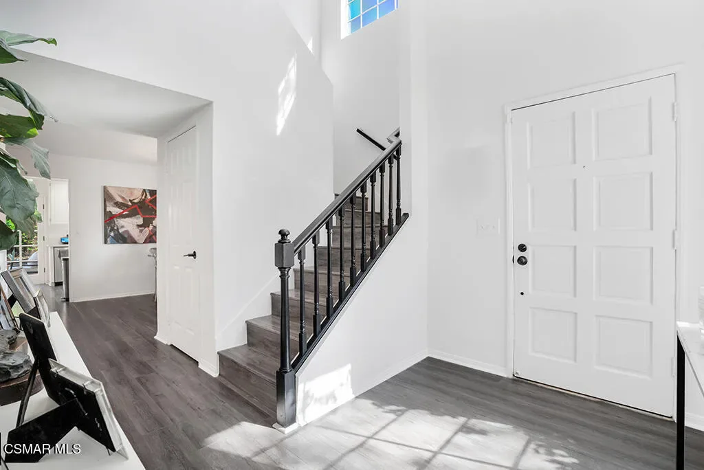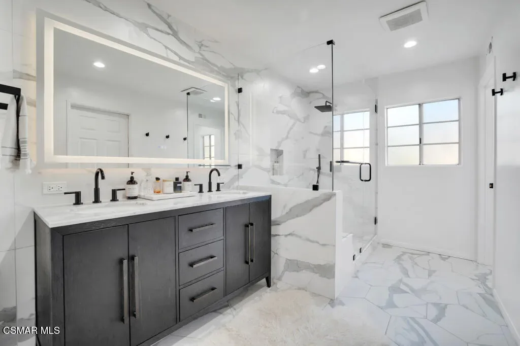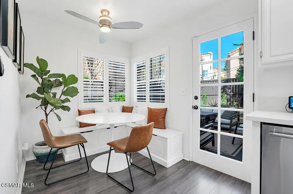 Welcome to this move-in ready 3-bedroom, 3-bathroom home in the highly sought-after Stone Creek community of Calabasas. Situated on a sprawling lot, the home makes an immediate impression with its inviting curb appeal and light-filled entry. The main level offers a convenient first-floor bedroom paired with a beautifully redesigned full bathroom, ideal for guests or flexible living. The family room flows seamlessly into a separate dining area, creating a versatile layout for everyday living and entertaining. The updated kitchen features a charming breakfast nook with a custom built-in bench, framed by large windows and a French door that opens directly to the backyard, perfect for indoor-outdoor living. Upstairs, you’ll find an en-suite secondary bedroom, along with a private primary suite featuring a completely reimagined bathroom with a large glass-enclosed shower and walk-in closet. The backyard is designed for both relaxation and entertaining, offering multiple areas to gather and enjoy the privacy of the setting. Stone Creek is centrally located near top-rated restaurants, shopping, scenic hiking trails, and parks, with convenient access to the beach. Located within the award-winning Las Virgenes School District.