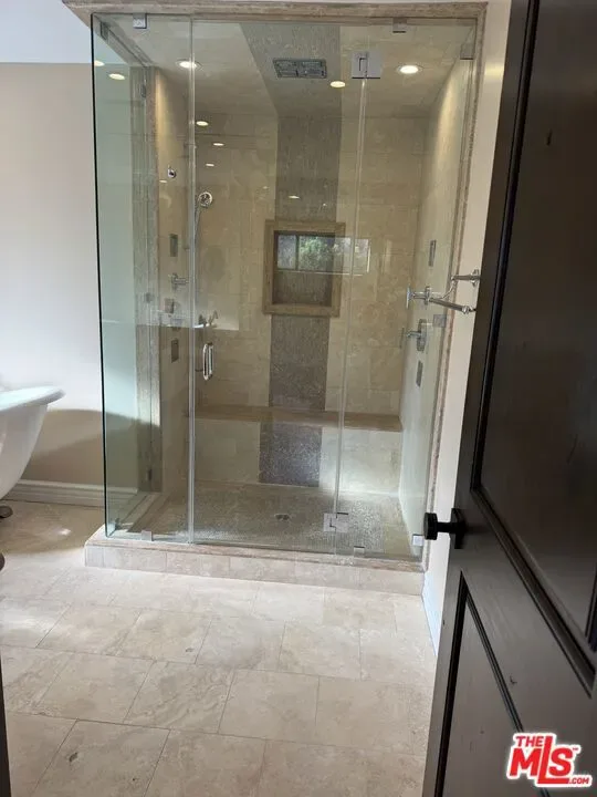 Resort style living with private sport court, pool and spa. This expansive contemporary ranch residence offers a bright open layout designed for both comfortable everyday living and easy entertaining. Wide stone tile flooring runs throughout the main living areas, complemented by smooth ceilings, crown molding, recessed lighting, and integrated ceiling speakers.The kitchen serves as the centerpiece of the home, featuring rich dark wood cabinetry with crown detail, granite countertops, and a full height stacked stone backsplash. A large central island with built in sink and dishwasher is paired with a secondary prep island with built in microwave and additional storage. Abundant natural light fills the space through large windows and sliding doors that open directly to the backyard.Multiple living areas provide flexibility for entertaining, media use, or relaxed daily living. Expansive glass doors create seamless indoor outdoor flow to the rear patio.The backyard is designed for both relaxation and recreation, finished with full width stone pavers, a long rectangular pool, and an elevated spa. Below the main yard level, a rare full size sport court with dual basketball hoops offers a unique feature not often found in the area.Ideally located in the Ruthwood and Las Virgenes area of Calabasas, close to top rated schools, shopping, and local amenities. Recently repositioned and now one of the best values currently available in this pocket.