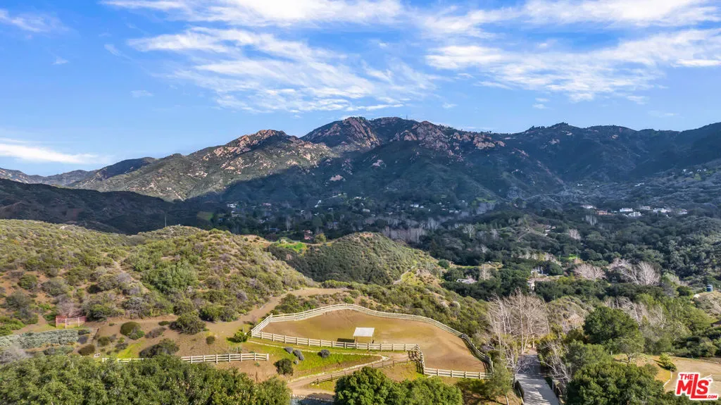Oaktree Ranch is a stunning 19-acre equestrian estate conveniently located just 10 minutes from the Malibu business district and the 101 freeway. Upon entering the gated estate, you’ll be greeted by a meandering road that winds through towering oak trees, leading to the Mark Rios-designed manor house. The sumptuous primary suite is located alone on the second floor and features an office, two state-of-the-art bathrooms, and two spacious closets. Two additional bedrooms with ensuite bathrooms are located on the main level, along with a gym, office, living room, dining room, and fully equipped kitchen. Outdoor amenities include a swimming pool with a cabana and BBQ area, and a lighted tennis court, perfect for enjoying the beautiful California weather. For those with an equestrian passion, there is an 8-horse stable with a stable manager’s office, two corrals, a chicken coop, a pigeon coop, goats, ducks, and ponies. At the entry to the property, there is a 4-bedroom guest house or caretaker’s home, providing additional space for visitors or staff. Oaktree Ranch offers the ultimate equestrian estate experience for those seeking privacy, tranquility, and a connection to nature, while still being in close proximity to the community. It’s the perfect retreat for those wanting to get away from it all while enjoying the best of both worlds.