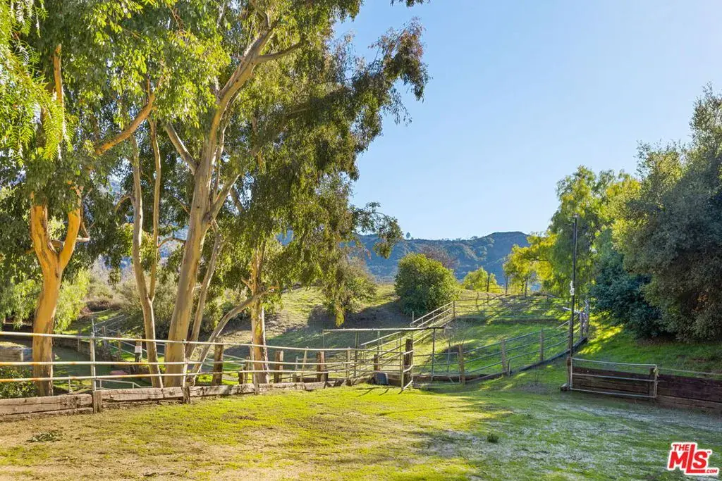 Welcome to 821 Camino Colibri, a breathtaking Monte Nido Luxury Ranch set in a serene and private oasis just minutes to Malibu and trendy Calabasas. Just over the lovely Edenwild bridge, this unforgettable equestrian estate offers a unique blend of tranquility and luxury on nearly 4.5 acres of oak studded park-like grounds, with glorious mature trees and gardens, and bordered by a remarkable seasonal creek. The property features an ancient oak grove, open pastures, two arenas, stalls, and a horse barn, making it a perfect retreat for equestrian and nature enthusiasts. Step inside this gorgeous Spanish estate and be captivated by this spacious and newly remodeled home, offering approximately 6,082 square feet. With 5 bedrooms and 6 beautifully remodeled bathrooms, there’s ample room for family and guests, completed by a fully equipped detached 1 bedroom 1 bath apartment. The chef’s kitchen is a culinary dream, featuring top-of-the-line Viking and Sub Zero appliances, perfect for crafting gourmet meals. The home’s interior boasts a vaulted ceiling family room with an impressive wood-burning fireplace that opens to a wrap-around veranda. This overlooks the inviting pool area and horse arena, providing a picture perfect backdrop for relaxation and entertainment. For movie lovers, the large home theatre is an ideal spot to unwind. The home also features two private work spaces, with dramatic views of the enchanting landscape. The beautiful hacienda-style fireplace and BBQ center is ideal for outdoor entertaining and stargazing opportunities. Imagine entertaining guests while overlooking the expansive lawns and listening to the soothing sounds of frogs and crickets from the seasonal stream. The property also includes a variety of fruit trees, vegetable gardens, a green house, and majestic mountain views, all within the total privacy of your gated estate. Enjoy easy access to the surrounding Santa Monica mountains’ trail system right outside your front door for glorious hiking and trail riding. This Monte Nido haven offers an unparalleled lifestyle, combining luxury living with the beauty of nature. Don’t miss the opportunity to make this exquisite estate your home. Award winning Las Virgenes Schools and mins to Viewpoint School. This IS California living and dreaming at it’s best!