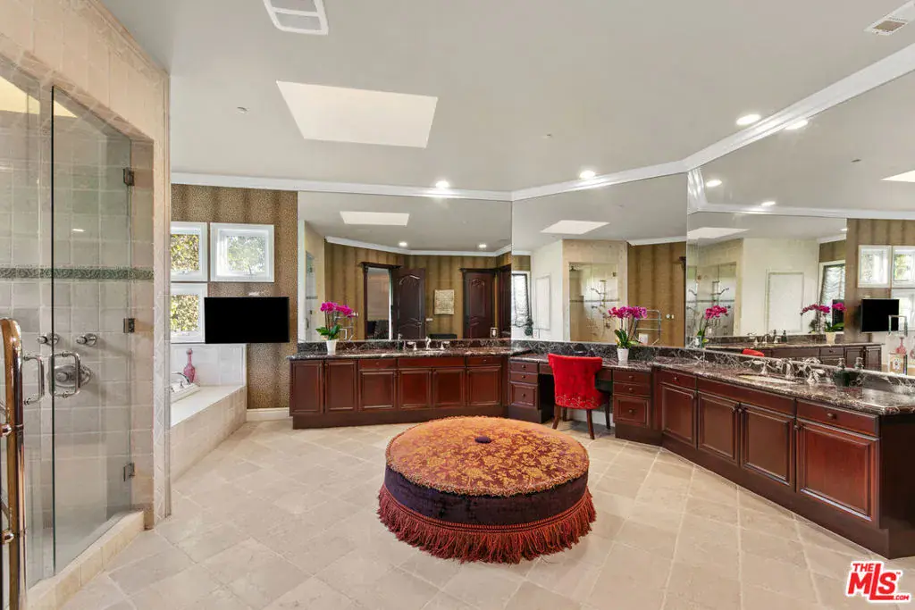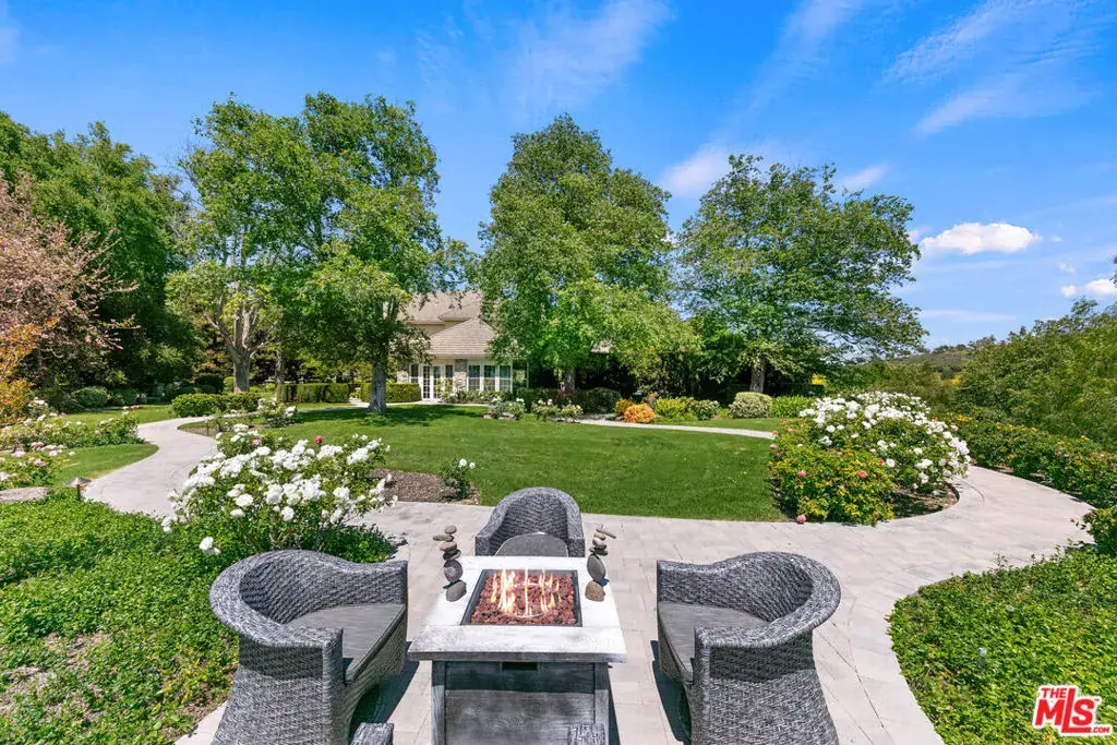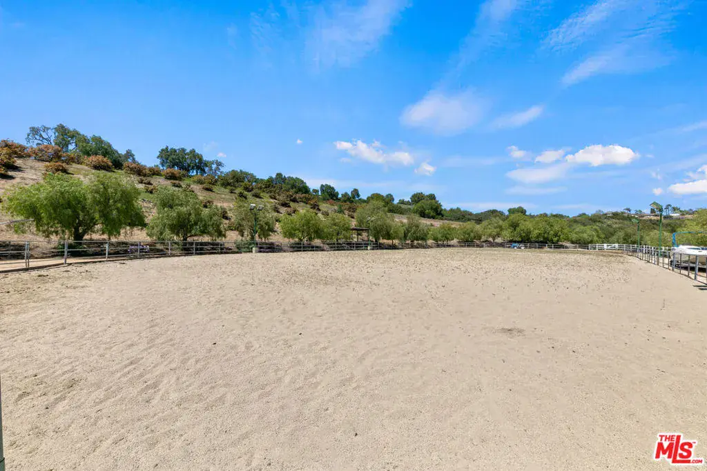 Just reduced – Truly the best equestrian luxury property under $7.5m. Set against the backdrop of breathtaking Santa Rosa Valley, Rocking Horse Ranch is a 21-acre dream estate that strikes the perfect chord. Tucked within a private, gated equestrian enclave where bridle paths weave through the community, this Country French-style retreat is more than just a home – it’s a lifestyle. Step inside the 6,731-square-foot main house and find a harmony of style and space, boasting 7 bedrooms and 6 bathrooms. This estate knows how to entertain, with beautifully landscaped areas (designed by Wendy Harper of Gardens of the World) that provide the perfect setting for hosting everything from intimate get-togethers to crowd-pleasing outdoor events. A detached (approx) 1200 sf 2-level pool/guest house/recording studio with living space, bath area, kitchen and laundry area overlooks it all, is ready to inspire your next composition or host your favorite guests. For the horse enthusiast, the property features a 6-stall barn with turnouts, a mini kitchen/bath, and a tack/sitting room, perfect for pre-ride chats or post-ride cool-downs. The star attraction is the regulation-sized riding arena with grandfathered lights (a rarity in Santa Rosa Valley) and a viewing stand that’s ready to host any equestrian performance. There’s also a hot walker, washing station, a pony ring and even a luxe chicken coop resort. But it’s not all boots and saddles. This estate has plenty of space to kick back and enjoy the good life. Wander through the avocado grove, tend to the greenhouse and rose garden, or perfect your short game on the putting green which doubles as an outdoor venue for movie nights under the stars. And don’t miss the gentle fenced path to a lush, flat grass area, perfect for hosting everything from weddings to soccer practice to memorable barbeques while taking in the Santa Rosa Valley views. The main residence presents high ceilings, a custom library/office, a music room, and gathering area with fireplace and sun room that opens onto the spectacular outdoor entertainment spaces. The kitchen is a chef’s arena, showcasing Sub-Zero refrigerator and freezer, 2 Dacor ovens, a 48-inch Thermador stove top w/BBQ, 2 Miele dishwashers, and 2 islands big enough for your entire crew. Nearby, the formal dining room comes complete with a bar and service area, ideal for cocktails and conversation. On the first floor, a full-bedroom suite with a private entrance is perfect for guests or au pair. Upstairs, the primary suite is pure indulgence, with a cozy fireplace, French doors leading to a sprawling balcony, and a mini kitchen for morning coffee or late-night snacks. Five spacious additional bedroom suites complete this level. Four fireplaces and heated floors add to the home’s warm appeal while integrated speakers, Creston automation and video security systems supply smart home features at your fingertips. There is an oversized 4-car garage and ample guest parking behind the entry gates. And when the lights go down? Head to the upper-level movie room with a bar, or step out to the exceptional pool and spa area, where a waterfall wall, fire features, and three covered gathering spaces set the stage for unforgettable evenings. The detached outdoor living room features a large fireplace, TV, outdoor kitchen and bar. Whether you’re throwing unforgettable pool parties, riding the trails or simply soaking in the sunsets, this estate is where country dreams and artistic inspiration come together in perfect harmony