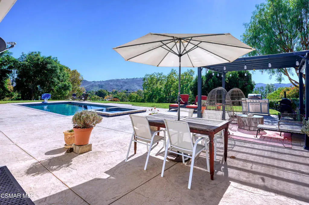 Rancho Santa Rosa Estate home with Sweeping Views & Timeless Charm!Behind a private gated entrance in the tranquil Santa Rosa Valley, this beautifully updated estate blends classic Farmhouse elegance with the ease of ranch living. Set on just over an acre, the property offers breathtaking westward mountain views from your own backyard oasis, complete with a sparkling pool and large patio with a sitting area! Inside, the thoughtfully remodeled home features a spacious main-floor primary suite with a luxurious bathroom. Three additional bedrooms and two full bathrooms are also located downstairs, designed for comfortable family living and effortless entertaining. (Note: one bedroom does not include a closet.)At the heart of the home is an inviting, updated kitchen with a large pantry, an adjacent laundry room, and direct access to the attached two-car garage. French doors in the family room open wide to showcase the stunning outdoor scenery and create a seamless indoor-outdoor flow. Upstairs, discover two additional bedrooms, a remodeled bathroom, and a versatile loft area that is perfect for a playroom, media space, or secondary living area. With abundant southern exposure, the grounds are ideal for your dream orchard or vineyard, featuring many fruit & Avocado trees. Also featuring a detached two-car garage with workshop, RV parking, and solar, adds to the property’s exceptional value and versatility. Whether you’re seeking a multigenerational haven, a hobby farm, or a peaceful retreat, this Rancho Santa Rosa gem is ready to welcome you home.