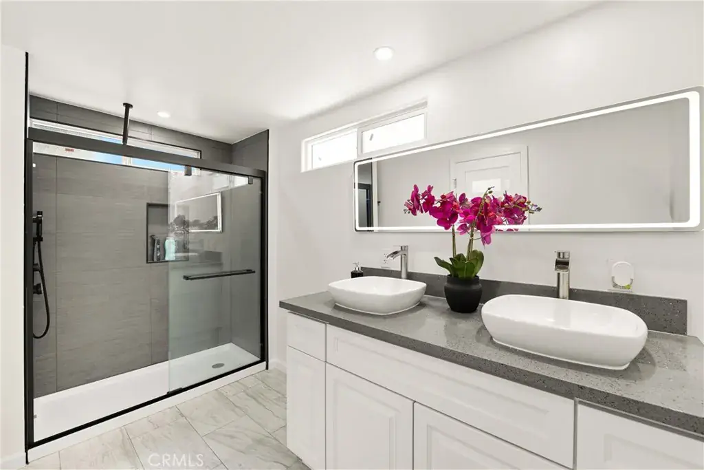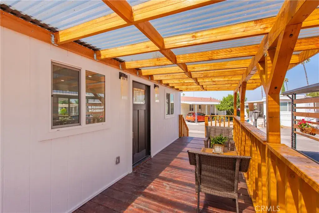 Exquisite 2-bedroom, 2-bathroom luxury living in the beautiful senior community of Casa Del Norte, located in the highly sought-after City of Camarillo, California. You are greeted onto the property with an indigenous perennial garden with a handcrafted deck, stained in honey gold and cherry oak — a perfect environment to unwind your day. Step inside to a bright, airy living space with a seamless open-concept layout, with white opaque doors and recessed lighting. The kitchen features black granite countertops, a moveable kitchen island, new kitchen cabinets, a stainless-steel sink with a sink system that allows you to cut vegetables, wash fruit, and dry your dishes at the same time. An extendable sink head pulls out and adjusts to a jet stream or a soothing shower for washing off the dishes. In the kitchen space, it has a laundry area for a stackable washer and dryer located behind an opaque door that blends perfectly.What we call our guest bathroom is like walking into a day spa. The floors have half-inch printed tiles from a Santa Barbara estate. The walls are clothed in ceramic tiles with an enclave to garage your bath amenities. The soak tub is just straight-up luxurious, with a Moen waterfall faucet that flows out of the wall. The matching sink vessel is made of porcelain with a stainless waterfall sink faucet. To top off the spa experience, we have added an oval touch mirror that has anti-fog and adjustable lighting. The second bedroom has a closet with twelve feet of hanging space, along with a built-in closet dresser and six-foot-six mirror slider doors. The master suite has two windows, a sizable closet, along with an exquisite bathroom with a custom double sink, two matching porcelain sink vessels, twin stainless waterfall sink faucets, a 63” x 20” touch mirror to adjust your lighting, and countertops with abalone and seashell speckles. The shower is something else — four jets and the rain shower that comes out of the ceiling is just mesmerizing. Casa Del Norte has a beautiful swimming pool, clubhouse, car wash, and RV storage for a nominal price.