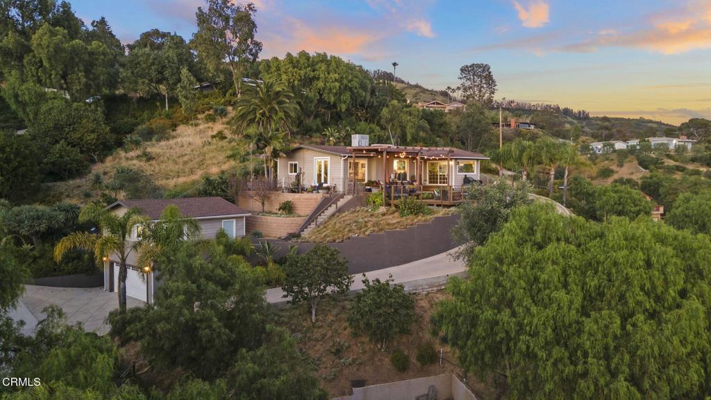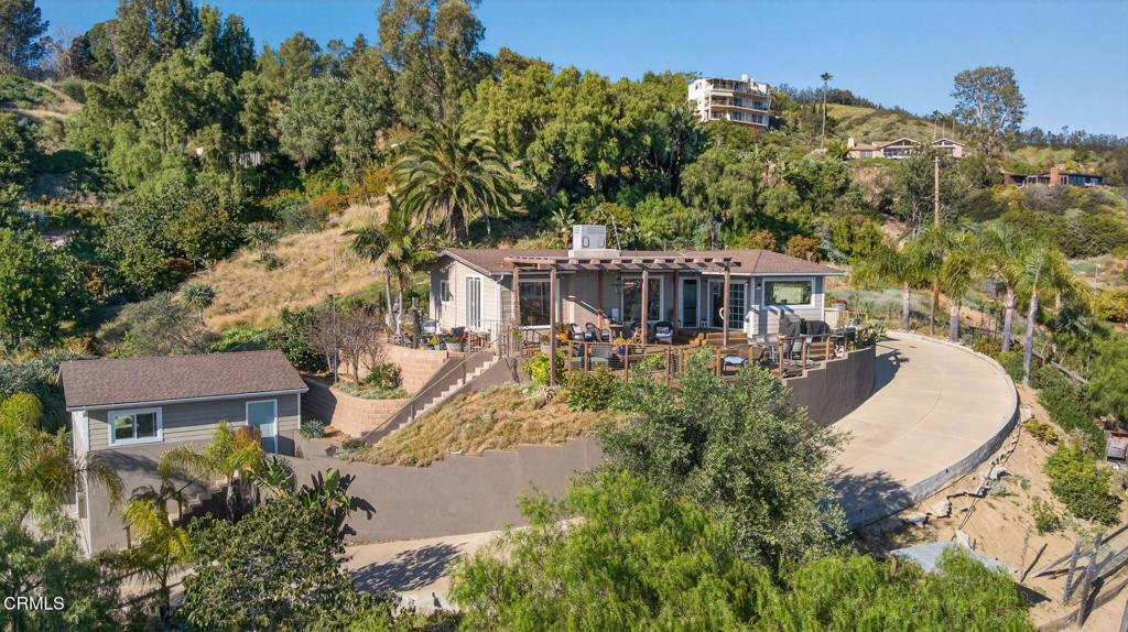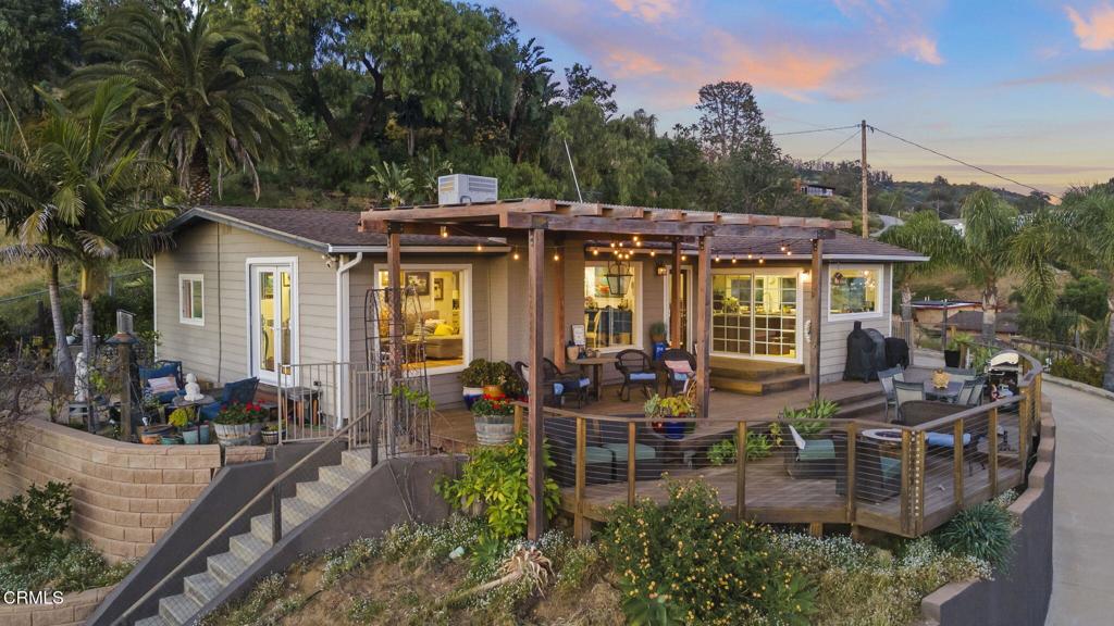 A truly special offering that doesn’t come along often… an in-town vineyard retreat with sweeping ocean and mountain views all the way to the Channel Islands.This charming California bungalow blends comfort, flexibility, and an incredible lifestyle in one unique property. The main home features 3 bedrooms, 2 bathrooms, and approximately 1,418 square feet filled with natural light and an easy, welcoming flow. The kitchen is beautifully updated with high-end appliances, soap stone counters, Wolf 6-burner range, wine fridge & sub-zero freezer drawers. Kitchen opens to the living spaces, creating a perfect setting for everyday living and entertaining. Expansive windows frame the amazing views and bring in those unforgettable sunsets, while the newer HVAC system (2023) adds modern comfort.One of the standout features is the detached bonus oversized LOFT above the 2 car garage, a private retreat complete with its own bathroom and kitchenette, and finished with stunning features including handcrafted Moroccan tile. It’s an ideal space for guests, extended family, a private office, or potential rental income.Step outside and you’ll feel like you’ve escaped to your own private retreat. The expansive front deck is perfectly positioned to take in the views, a gas lantern adds ambiance & charm, plus deck is completely fenced. While the 150-vine mini vineyard with Cabernet and Sangiovese grapes adds to the charm and experience. Multiple outdoor spaces invite you to relax, entertain, and enjoy–whether it’s a quiet morning by the garden fountain or an evening gathering under the sky.Additional features include a 2-car garage, RV parking area, and a Tuff Shed for added storage and functionality.All of this, just a short distance to town, offering the perfect balance of privacy, beauty, and convenience.Homes like this are rare–and this one is truly something special.Additional features but not limited to: new insulated attic rodent sealed, guaranteed & free for life of home. Motion lights & alarms in back & side plus wired ring door bell. Front slope features a Chicken coop and rabbit pens