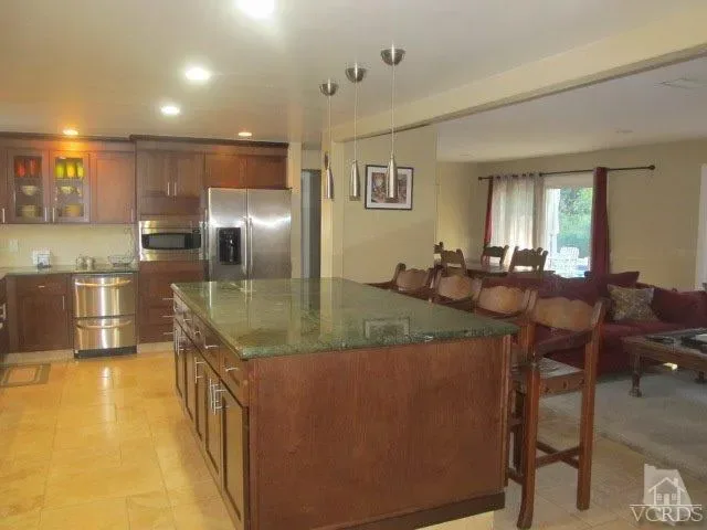Las Posas Estates! Single Story 5 Bedrooms! This is Owner uses this home as a vacation rental during the summer.Fully furnished Single Story tropical pool home. Located on a cul-de-sac street in Las Posas Estates. Relax and enjoy inside and out. RV parking. Private back yard on 1/2 acre that backs to open space, a tree lined barranca that runs along a fairway of Sterling Hills golf course. Walking trails close by. This tropical back yard is lined with palm trees, heated swimming pool, built in barbecue, outdoor fireplace, large redwood deck, & a gazebo lounge. Great for entertaining family and friends. The large gourmet kitchen has top of the line appliances, granite, large island & built in wine cooler. Large Master bedroom has views and access to the peaceful outdoor setting. Master bath is designed with Quartz stone, roman tub for relaxing and a separate shower. Every bathroom has been upgraded with a unique design.Tenant pays utilities. Owner pays for landscaping & pool services. Ready November 1St to lease one year.