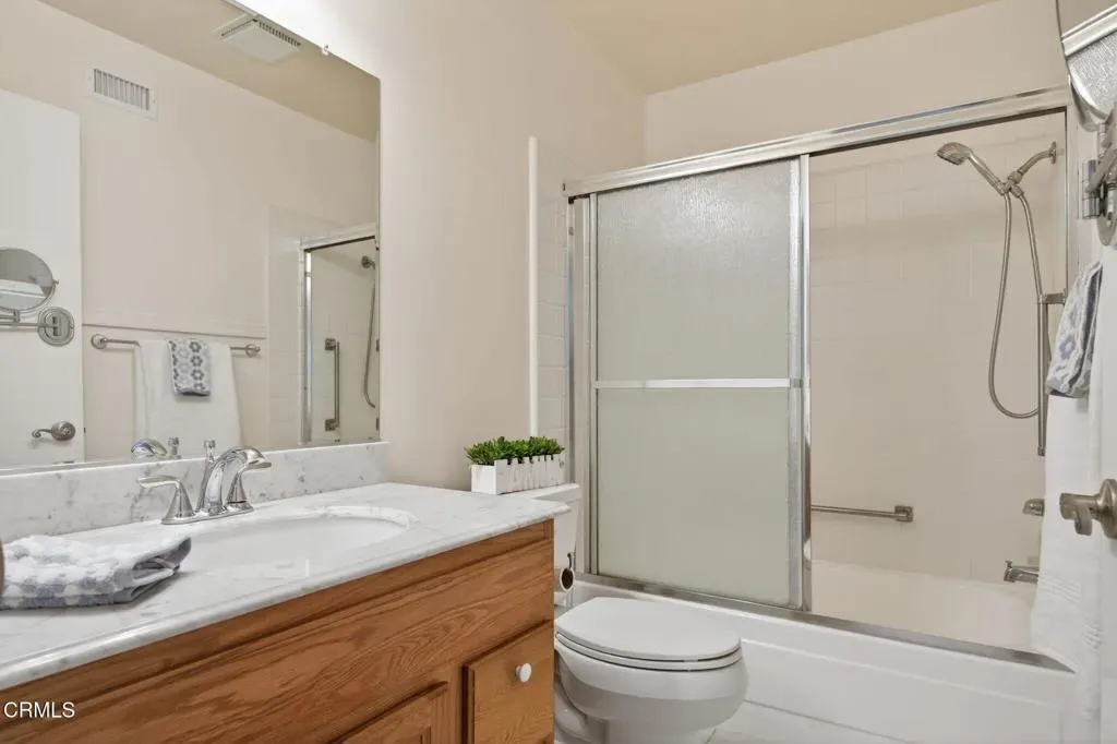 Welcome to this freshly painted Brentwood model, a 2-bedroom, 2-bath home nestled within Leisure Village’s 55+ community, offering a wonderful blend of comfort, convenience, and opportunity. With an assumable loan at an incredibly favorable interest rate under 3% for a qualified buyer, this property stands out as a rare and valuable find in today’s market. Step inside to a light and inviting interior, where the spacious primary suite serves as a peaceful retreat, complete with its own private bathroom and relaxing soaking tub. Large mirrored closets add both elegance and generous storage. The secondary bedroom and full bath provide flexibility for guests, hobbies, or a home office. The kitchen is designed for everyday ease, featuring a dual sink, abundant cabinetry, and a cozy layout that opens seamlessly to an enclosed patio through sliding glass doors–perfect for morning coffee or unwinding at the end of the day. Additional highlights include an attached 1-car garage with the option for added storage, making organization simple and practical. Enjoy the lifestyle that comes with living in one of Camarillo’s premier 55+ communities, where comfort, community, and convenience come together. This is a special opportunity you won’t want to miss.