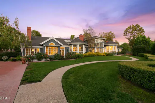 Elegant One-Story Traditional Estate on 10 acres in Prestigious Gated Exclusive Neighborhood. Set within one of Ventura County’s most coveted enclaves–Lexington Hills Estates–this extraordinary ten-acre property combines pedigree, privacy, and timeless architectural beauty.This Colonial Revival residence embodies classic proportions and warm livability, offering over 5,800 square feet of finely crafted interiors with five bedrooms and six bathrooms plus a dedicated office library with richly paneled walls and fireplace. A dramatic marble-floored entry sets the tone for the refined detailing throughout. Sunlight pours through French doors and expansive windows, framing views of brick walkways, gardens, and the elegant rectangular pool. There is a producing orchard with over 500 trees that bear Golden Nugget Tangerines. Each space within the home reveals thoughtful craftsmanship and character–from the wood-paneled office and grand formal dining room to the inviting breakfast room overlooking the gardens. Designed for both comfort and sophistication, the layout seamlessly connects indoor and outdoor living, ideal for entertaining or everyday serenity.Beyond the residence, the grounds unfold in a series of picturesque garden rooms shaded by mature trees and surrounded by panoramic views. At the heart of the estate lies a sparkling pool on one of the largest usable parcels in the area, complete with over 500 Golden Nugget Mandarin trees–a rare and enchanting touch. Located in the sought after award winning SRTMS school district. A true estate in every sense–majestic yet welcoming, private yet perfectly situated–this home offers the tranquility of country living just minutes from Camarillo Airport, world-class restaurants, boutique shopping, and the cultural landmarks that make Ventura County so extraordinary.