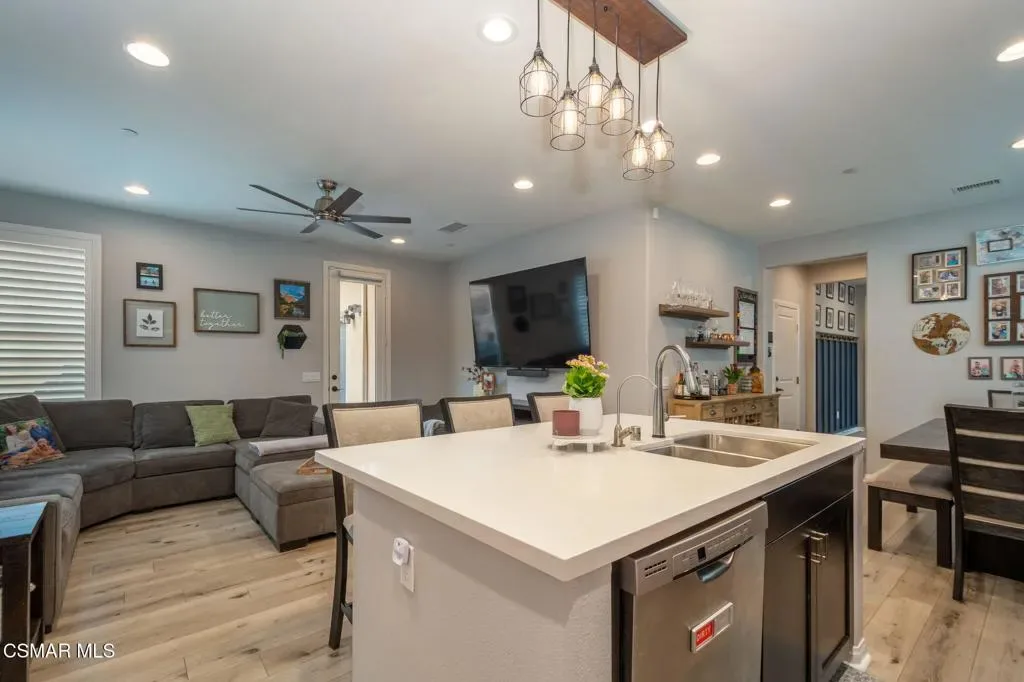 Step into effortless California living in this stunning, turnkey home located in the highly desirable Springville community of Camarillo. Thoughtfully designed with both style and function in mind, this residence offers a bright, open layout and high-quality upgrades throughout. The heart of the home is the beautifully appointed kitchen, featuring sleek quartz countertops, modern cabinetry, a designer tile backsplash, and stainless steel appliances–all flowing seamlessly into the spacious living and dining areas. Whether hosting friends or enjoying a quiet night in, this open-concept design creates the perfect backdrop for everyday living. Upstairs, you’ll find three generously sized bedrooms along with a convenient laundry room. The primary suite is a true retreat, offering a spa-inspired bathroom with dual vanities and a custom-tiled walk-in shower, designed for comfort and relaxation. Plantation shutters throughout add a refined touch. Additional features include luxury laminate flooring, enhanced lighting, an EV-ready two-car garage with custom California Closets storage, tankless water-heater, water softener, and a leased solar system for improved energy efficiency. Outside, enjoy a private, low-maintenance backyard with stylish stone pavers. Springville offers a welcoming neighborhood atmosphere with nearby parks, green spaces, and walking trails, all just minutes from the best of Camarillo. Enjoy easy access to local shopping, dining, the Camarillo Premium Outlets, Camarillo Airport, and close proximity to CSU Channel Islands and Point Mugu Naval Base. With Camarillo’s mild coastal climate and nearby beaches, this location truly offers the best of Ventura County living. Discover a home where modern comfort meets everyday convenience in one of Camarillo’s most sought-after communities. Assumable VA loan at 2.625%,
