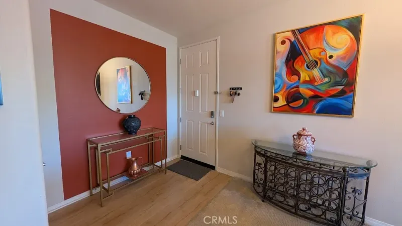 This spectacular home has laminate, tile, and carpet flooring. There is a filtered water dispenser on the kitchen counter. No need to buy bottled water. It is punctuated with a modern LG front loaded washer and dryer tower. There are beautiful window shutters throughout with a roomy patio overlooking the complex and the gorgeous Santa Monica mountains. A 55- inch LG, OLED full motion wall mounted television is included with the sale of this unit.