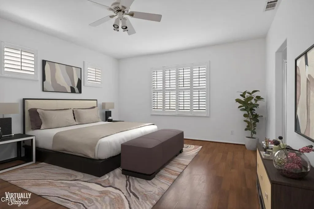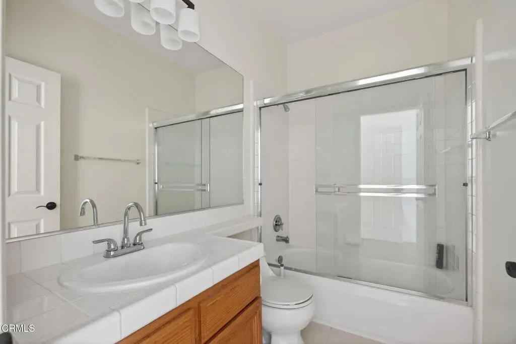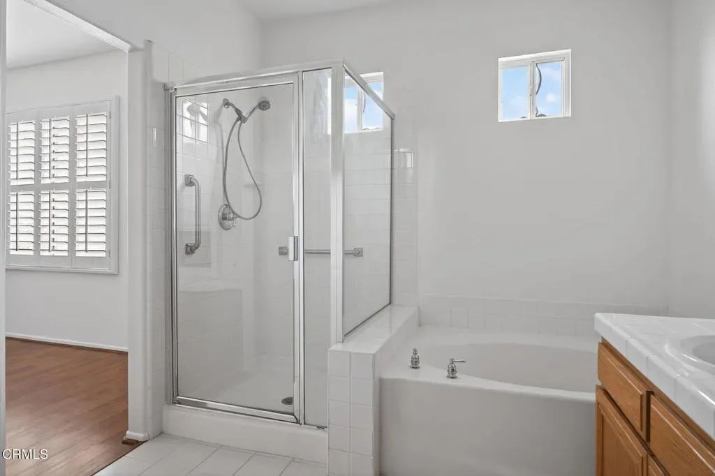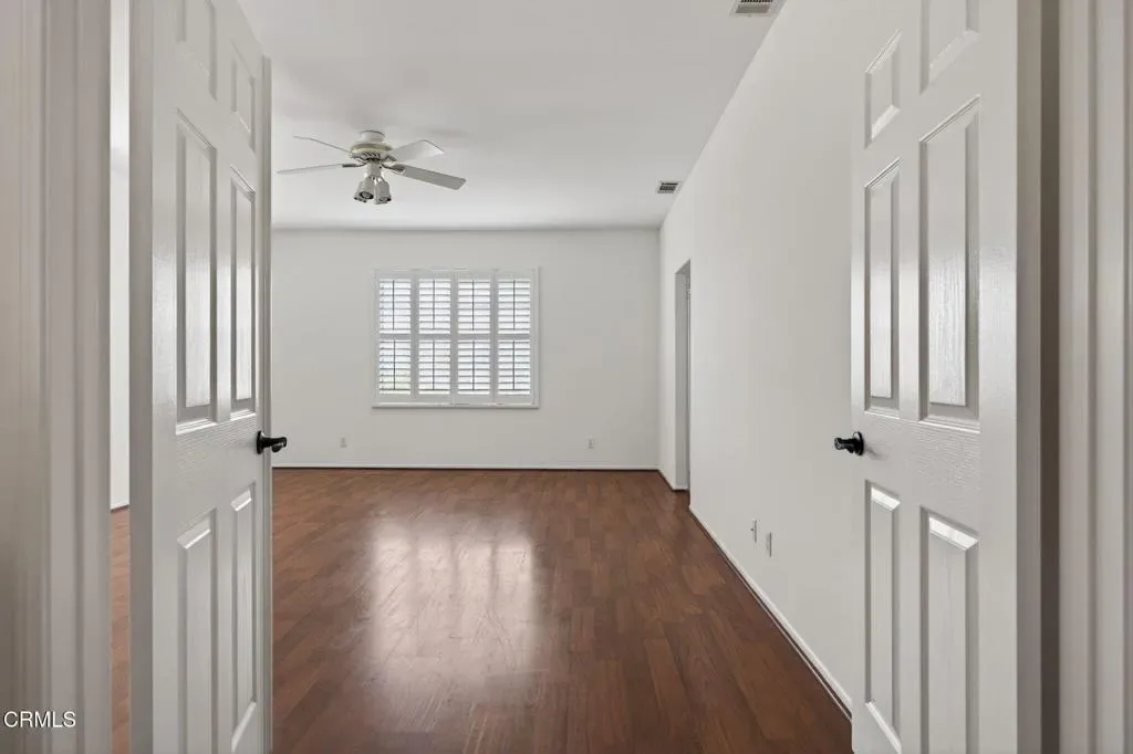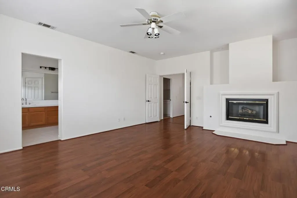 Welcome to Palm Colony, one of Camarillo’s most desirable gated communities, offering a vibrant lifestyle and outstanding amenities. This prime corner location features 3 bedrooms, 3 bathrooms, and approximately 1,860 sq ft of well-designed living space.Step inside to vaulted ceilings and abundant natural light that instantly create the feel of a single-family home. The flexible floor plan includes a main-level bedroom or office with a full bathroom–ideal for guests or working from home.The updated kitchen showcases granite countertops and custom cabinetry, opening to the dining area and spacious living room with direct access to a private side patio–perfect for entertaining or relaxing. Tile flooring downstairs, wood-like vinyl upstairs, and custom wood shutters add style throughout.Upstairs, both bedrooms are private primary suites with en-suite bathrooms. The main suite offers a cozy fireplace and walk-in closet, creating a comfortable retreat. An upstairs laundry area adds everyday convenience.Enjoy a direct-access two-car garage, ample guest parking, gated entry, and beautifully maintained greenbelts.Palm Colony amenities include a pool, spa, tennis courts, racquetball, fitness center, and RV/boat parking–everything you need for an active lifestyle.Ideally located near the Camarillo Premium Outlets, dining, shopping, and easy access to the 101 Freeway.Some photos have been virtually staged to illustrate potential.