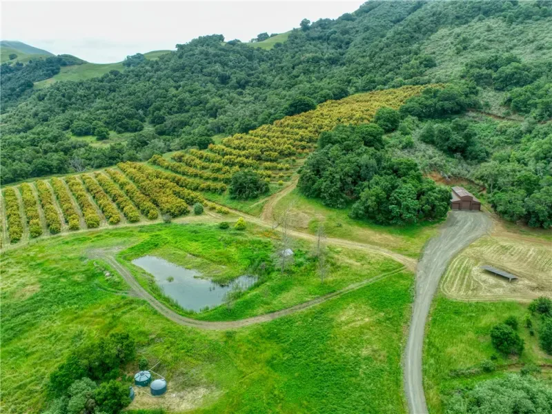 Abundant Water flows from artesian wells, filling up the 50,000 gallons of stored water at this Legacy property, in the Williamson Act for big tax benefits, your family can treasure for posterity, just 20 minutes from the beaches of the Central Coast. In the midst of some of the world’s finest vineyards, the 195 Acres includes about 2/3 mile of Santa Rosa Creek, which flows all year long. 1,000 Hass avocado trees cover approximately 7 acres. The home is located near the paved road, surrounded by fruit and shade trees. The original 800 sq ft home was built in 1900! In about 2013, an 800 sq ft great room with stone fireplace and lots of windows that bring in the garden views and sunshine, was added. The home is Move In Ready. The back yard fronts the Creek, where you can sit on summer days with your feet in the creek wiling away the hours. Nearby are 2 garages and an old but functional barn, and your own solid steel and concrete bridge that leads up the hill to the newer barn, pond, orchard, solar array (14.5 Kw) and a few building sites. Up from this area are six of the total ten 5,000 gallons water storage tanks, constantly over-flowing. There are so many remarkable, special, beautiful settings for you to enjoy. At the top of the property you get an expansive ocean view spot perfect for outdoor gatherings/BBQ/etc! So much here that you will likely not want to leave.