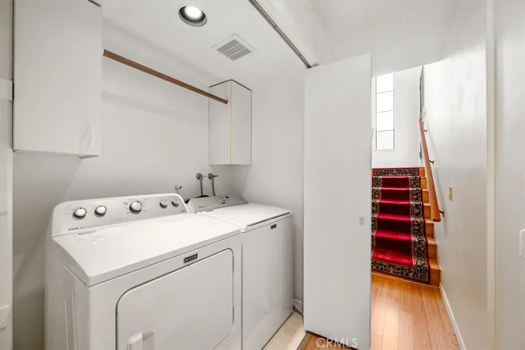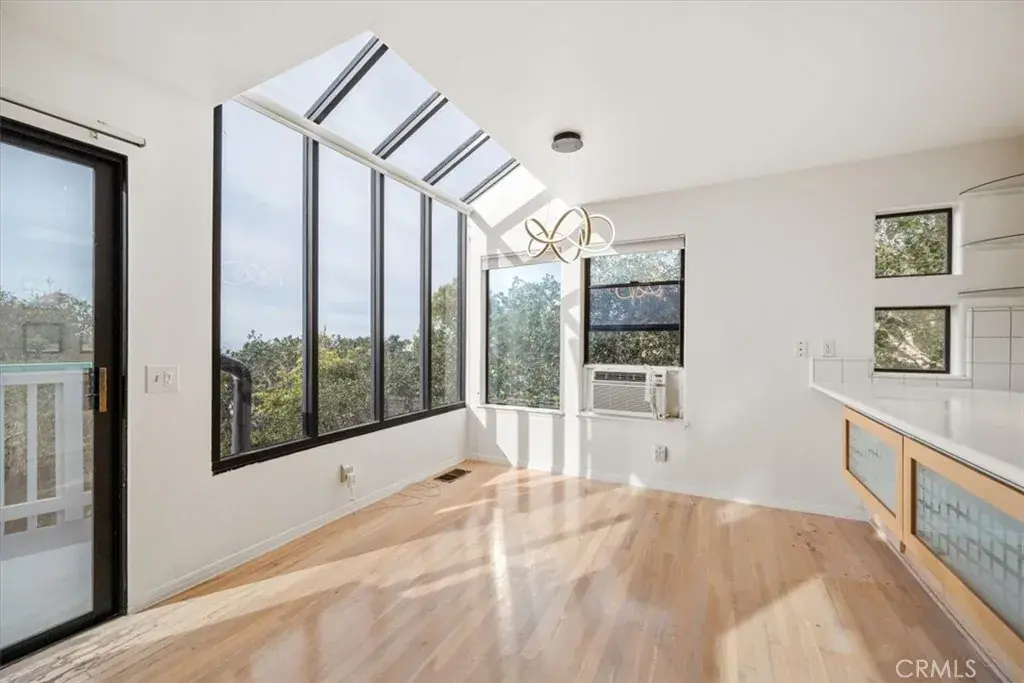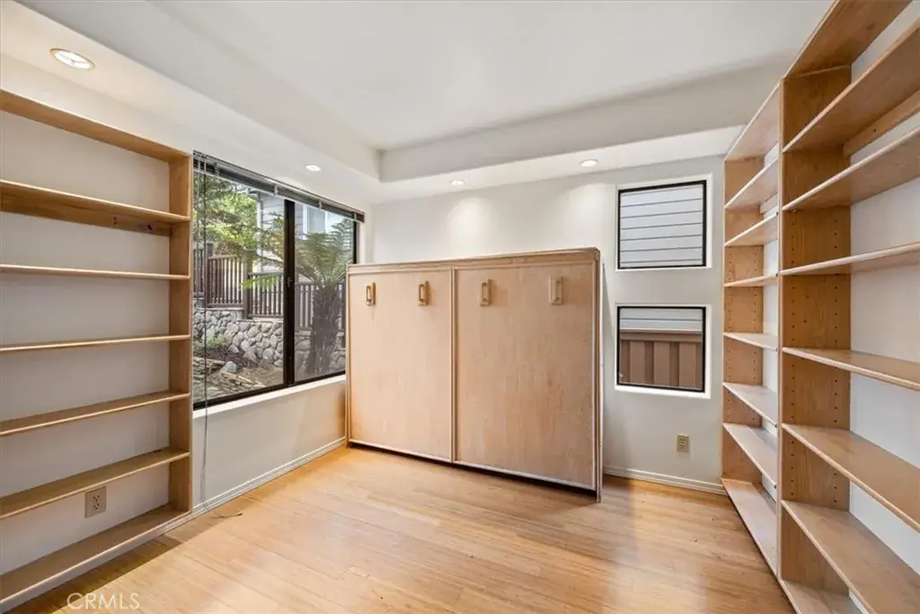 Downstairs, you’ll find two additional bedrooms, both with built-in shelving and Murphy beds, offering flexibility for guests, work-from-home, or creative space. A dedicated laundry area and a charming sunroom add function and bonus living space.