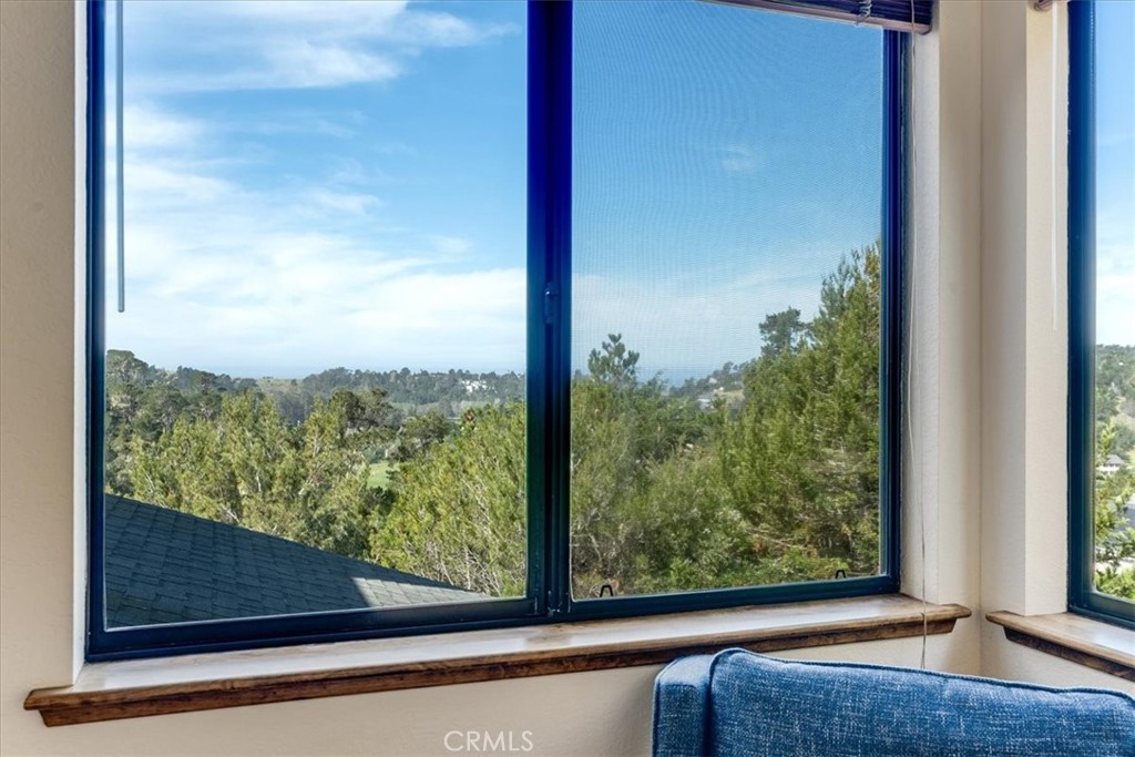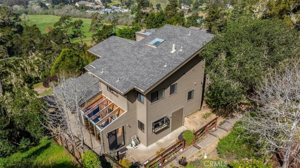 Set in a unique enclave of 18 homes, 3171 Rogers offers panoramic ocean views over Santa Rosa Creek, from virtually all of the 2,700+ sq ft, 3 bed/3 bath home on almost 1/4 acre site! A formal entry greets you, leading to the 5’ wide shallow step stairway up to the main floor. Here you will find a 20’ X 22’ X 10’ high ceilings living room with massive windows to take in the Ocean Views right down the Santa Rosa Creek Arroyo, and a deck to enjoy the sunsets. Just steps away from the Fiscalini Ranch trails. Also on the main level is a formal dining room, kitchen, laundry/powder room, and a sunroom, all set in an open-ish plan. The kitchen has a breakfast nook, triple sink, double ovens, an island and access to a BBQ patio. The formal dining has built-ins, a vaulted ceiling and views. The sunroom is an unusual plus, providing a place for pets, solar heat gain, and a sunny sitting area. The 1st bedroom is found half a flight up and has a 3/4 bath. Another half flight takes you to the large Main Suite. Its ensuite bath has a jetted tub, separate shower, 13’ of counter & double sinks, and a walk-in closet. Half a flight again is bedroom 3, again with views and volume. All aspects of this home are spacious and oversized and there are ample storage closets throughout! Well maintained home inside and out, private paved driveway and parking, landscaping, etc, waiting for you.