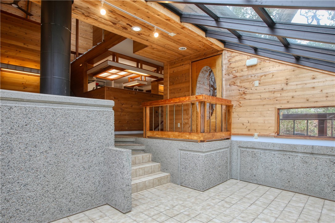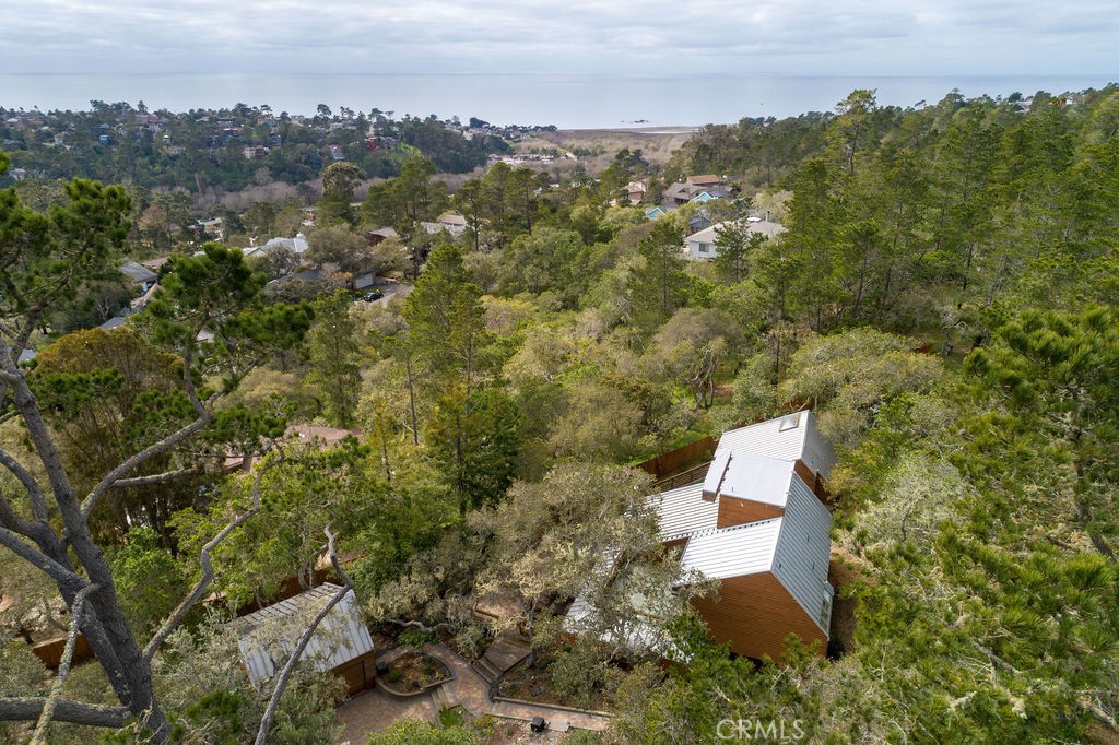 1021 Hillcrest is an architectural gem, perfectly designed for the 1+ acre site in sunny and sought after Pine Knolls, the original premier neighborhood in the seaside village of Cambria. This home features a passive solar design that incorporates Big Sur-esque exposed aggregate walls that serve as thermal mass complimenting the Douglas Fir post/beam structure. While the spaces are multi-leveled, only a few stairs separate each. Ceilings are vaulted and beamed, with skylights and windows for abundant light while feeling the outdoors mingle with your inside living. Decks provide plenty of outside living space where you can take in the awesome setting, which is not only adjacent to the approx 1,600 acre Covell Ranch, but also provides ocean views and powerful sunsets to the west! James Maul, noted Central Coast architect, designed so many features into this property, with paths and patios connecting the main home to the guest house, and the detached garage just below. The buildings are set back from the street, up the beautifully multicolored paver driveway, with extra parking areas, including RV area with hookups. The main house is loft-style one bedroom with great openness throughout, and the guest house has 2 bedrooms and a bath, also designed Maul-style with plenty of artful beam work. The two parcels total over one acre of privacy and unlimited options for your legacy property. A few minutes from the village, and a short drive to Big Sur, Paso Robles wine country, many beaches to meet your needs, and our big city of San Luis Obispo!! Call your realtor today for a private showing.