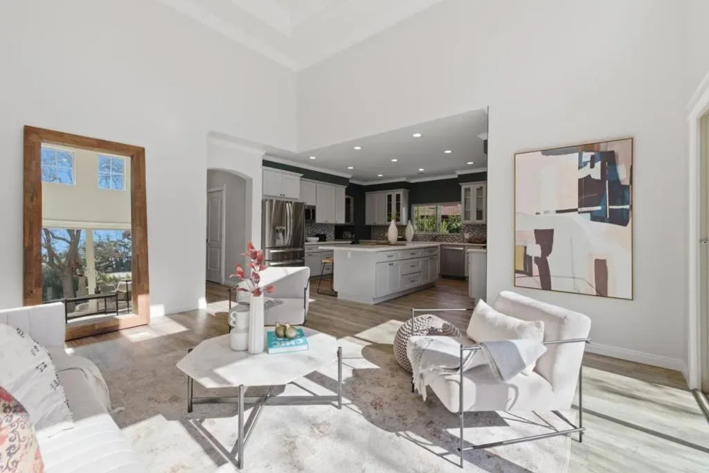 This stunning and modern Campbell home features an immaculate 3bedroom, 3.5bath floor plan with 1919 sqft of living space, set on a massive lot of nearly 12,000 sqft. Rebuilt in 2018, the residence boasts soaring ceilings throughout, highlighted by a dramatic 16-foot grand room with double sliding doors for seamless indoor-outdoor living. Premium engineered wood flooring and custom-designed closets enhance both style and functionality. The gourmet kitchen is centered around an oversized island and includes quartz countertops, a full backsplash, and a professional-grade 5-burner Italian gas stove with a wok feature. The property includes Belgard pavers, decking, fruit trees, garden beds, and drought-tolerant landscaping. The outdoor kitchen is fully equipped with a 42-inch stainless steel grill, a griddle, and Perlick refrigerated drawers. This private backyard retreat also features an endless pool swim spa, a hot tub, and a detached “studio-like” shed. Additional energy-efficient features include paid-off solar and two Tesla Powerwalls. The large lot offers plenty of space for a potential ADU and RV or boat parking. Located near top-rated Cambrian schools with easy access to Highways 85 and 17. This move-in-ready gem can be yours. Don’t miss out on this fantastic opportunity!
