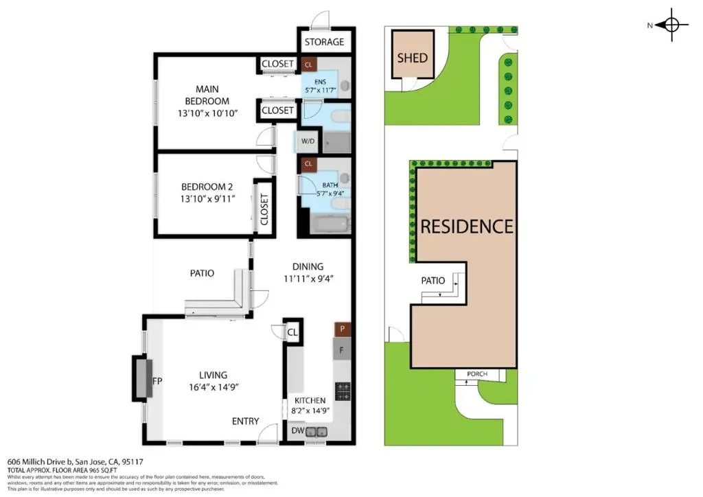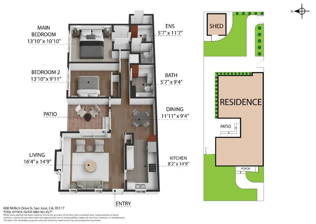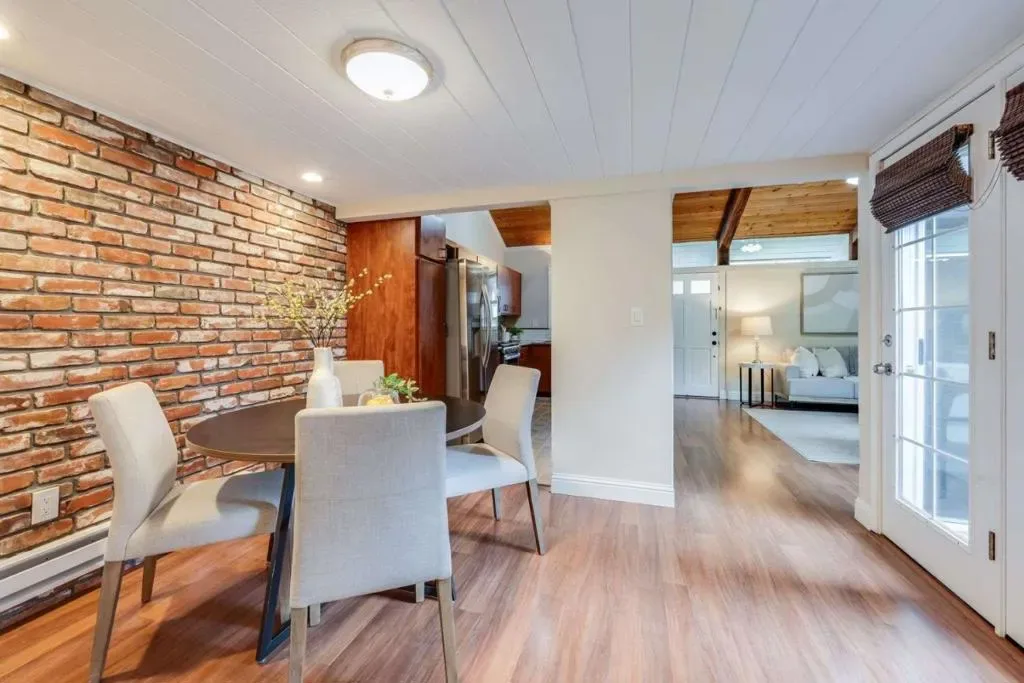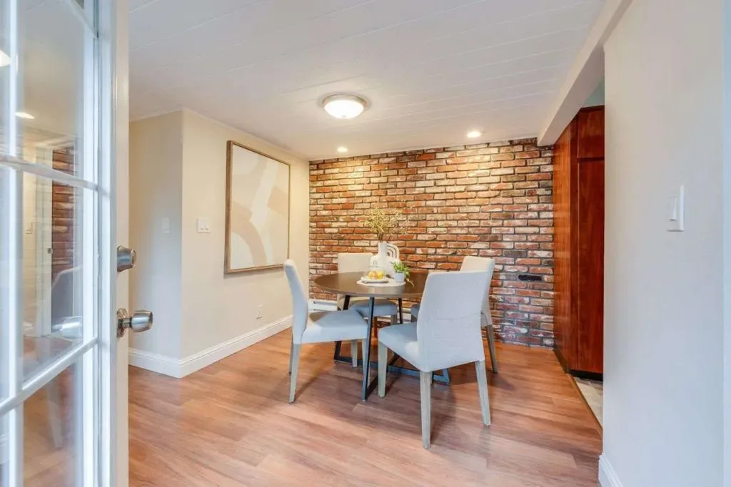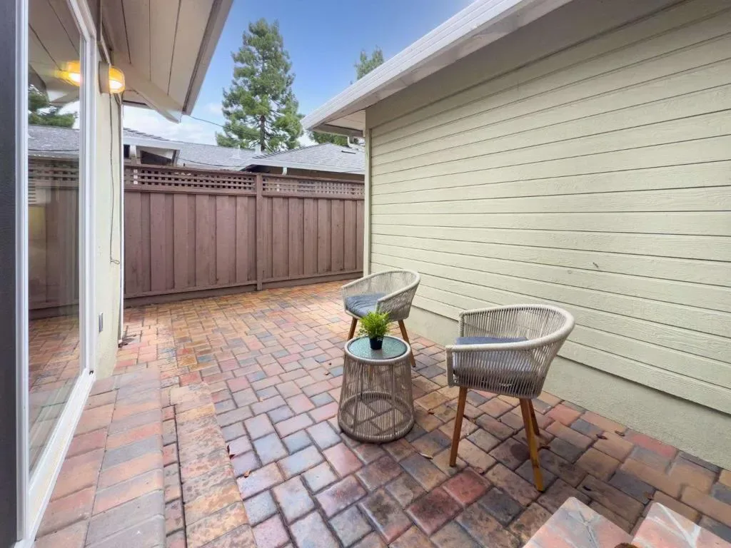 606 Millich Drive, Unit B, is a single-level, end-unit, 2 bedrooms, 2 bathrooms home across approximately 1,018 sq.ft. It is part of Valley Forge Condominium Association #1 a community of 20 townhouse-style homes. Vaulted ceilings with exposed beams highlight the open living and dining area, with glass doors leading to a private patio. A brick accent wall and fireplace add warmth and character. Kitchen is well-appointed with granite countertops, oven range, microwave hood, dishwasher, garbage disposal, and refrigerator, along with ample cabinetry. Hardwood floors span the main living areas, with tile in the kitchen and baths. he primary suite offers an ensuite bath with shower and his-and-her closets. A hallway bathroom serves a second bedroom with a built-in closet with shower-tub combo. Both baths have updated lighting, granite countertops, undermount sinks, and modern faucets. In-unit washer and dryer included. A generously sized backyard provides a flexible outdoor retreat with a storage shed. Parking includes a covered carport space along with an additional storage. Conveniently located near shopping, parks, transit, San Tomas Expwy, Hamilton Ave, and Hwy 17 & 280.