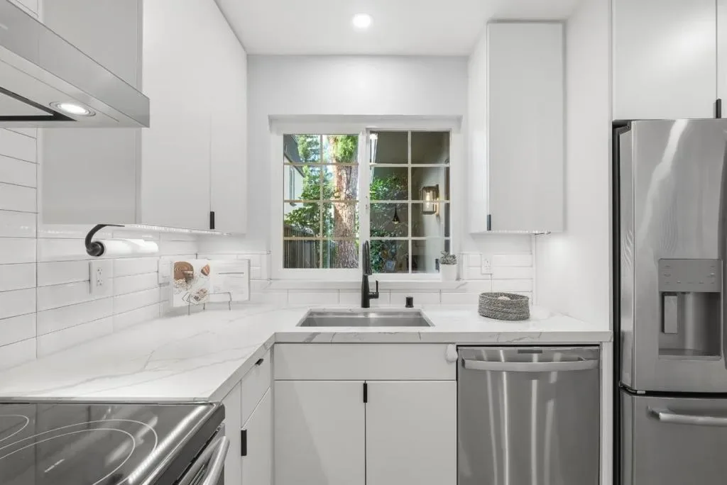 This desirable end unit offers privacy, natural light, and a prime location in Campbell. With 2 bedrooms and 2.5 baths, this Planned Unit Development (PUD) features a bright, open floor plan with dramatic vaulted ceilings and a cozy gas fireplace, creating an inviting living space. The home has been thoughtfully updated with a remodeled kitchen and bathrooms, new fixtures, a newer HVAC system, a newer water heater, and fresh interior paint, making it move-in ready. Enjoy the spacious bedrooms and comfortable layout, as well as a private backyard that includes a storage shed/workshop, perfect for relaxation or hobbies. This unit also comes with a 1-car garage and 1 assigned parking space and has low HOA dues. It is ideally located near The Pruneyard, Downtown Campbell, dining, shopping, parks, and light rail, offering both convenience and a desirable lifestyle.