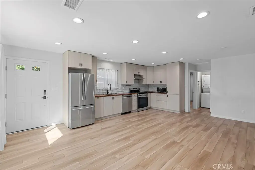 Located in a quiet pocket of Canoga Park, 22229 ½ Covello is a modern and private attached ADU offering 1 bedrooms and 1 bath with a bright open layout and stylish contemporary finishes throughout. The spacious living area blends seamlessly with the updated kitchen, featuring stainless steel appliances, ample cabinetry, wood-style flooring, and recessed lighting for a clean, polished feel. The spacious bedroom includes direct access to the private outdoor patio and a generous walk-in closet with custom built-ins for storage and organization.The bathroom has been tastefully updated with sleek fixtures and a tiled shower/tub combo. Additional amenities include in-unit washer and dryer, central air, and convenient gated side-entry access. Outdoor space includes a private patio area ideal for seating, morning coffee, or fresh air. Located minutes from shopping, dining, and Valley transportation corridors while still offering a peaceful residential setting. Contact us today for a showing!
