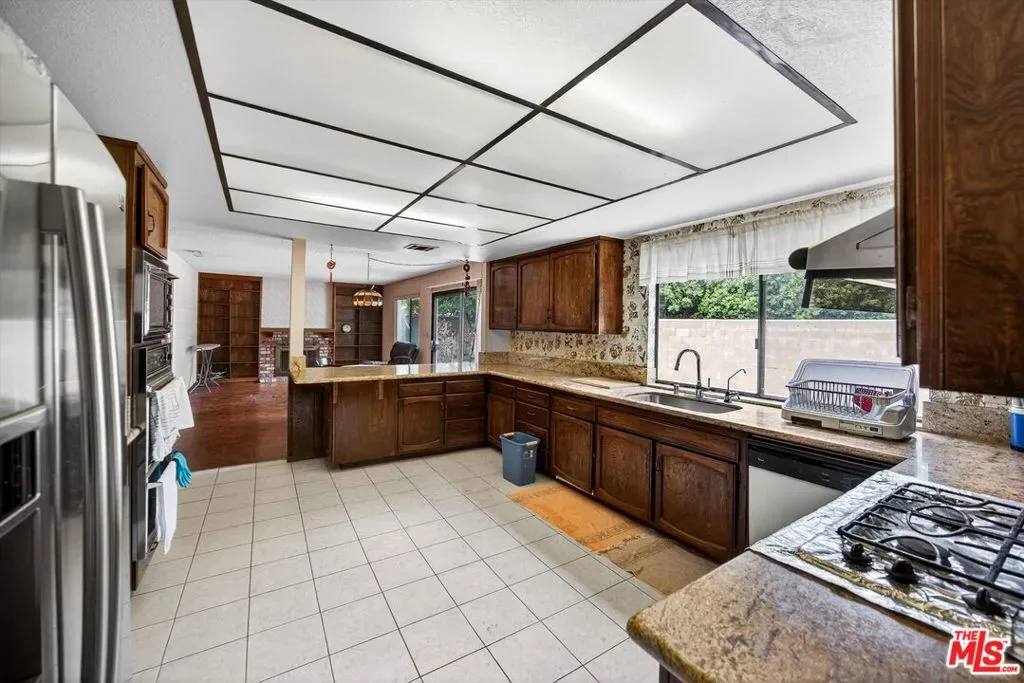 Opportunity knocks in desirable West Hills! This spacious home offers over 2,600 sq ft and is ready for your vision and renovation. Featuring soaring cathedral ceilings in the living and dining areas, an open kitchen that flows into a family room, and direct access to the backyard, the layout provides a fantastic foundation to reimagine.The main level includes a convenient bedroom and bathroom ideal for guests or multi-generational living. Upstairs, you’ll find four additional bedrooms and two bathrooms, including a generously sized primary suite with private balcony access, dual sinks, and a separate tub and shower. There is also attic access from one of the bedroom closets, offering a substantial space that may lend itself to creative uses (buyer to verify).The backyard presents a blank canvas, including a pool that has not been in use for an extended period and is ready for restoration.Property is a fixer and requires repairs, property is being sold in as is present condition. Additional features include a three-car attached garage and ample driveway parking, all situated on a quiet cul-de-sac in West Hills. Bring your contractor and imagination this is your chance to transform a diamond in the rough into something truly special!