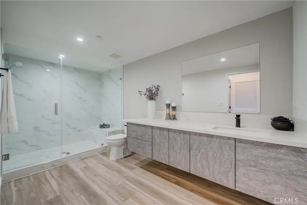 Discover true luxury living at Heva Warner Center in this small boutique-style building. This modern 3 bed 2.5 bath luxe townhouse features an open floor plan drenched in natural light & a generous balcony. The kitchen is equipped with custom made European cabinetry, full quartz backsplash, high-end appliances, & plenty of storage. Upstairs you’ll find 3 spacious bedrooms with plenty of closet space & the spa-like bathrooms are absolutely gorgeous. You will find luxe finishes throughout, digital air condition, a tankless water heater, & en suite laundry. Enjoy the Zen style rooftop deck with a 360-degree panoramic unparalleled mountain and city views. Ideally located within short distance to Westfield Topanga Shopping, The Village, Uptown Warner Center & the Metro Orange Line. This home comes with 2 tandem parking spaces in the garage and is a controlled access building.