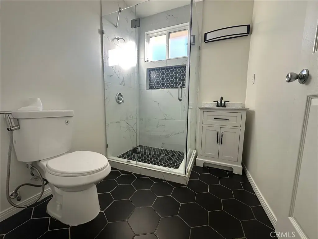 A perfect choice for an extended family. Welcome to this freshly painted home filled with abundant natural light. This wonderful property features 4 bedrooms and 3 bathrooms, with wood-laminate flooring throughout and direct backyard access from multiple rooms. Enjoy a spacious living and dining area highlighted by a striking floor-to-ceiling black brick fireplace. The extra-large kitchen offers a generous pantry, double stainless-steel sink, and stainless-steel appliances—ideal for everyday living and entertaining. A convenient indoor laundry room includes a brand-new washer and dryer along with a utility sink. The freshly painted primary suite features large picture windows, a wall-to-wall closet with mirrored wardrobe doors, wood-laminate flooring, direct backyard access, and a private en-suite bathroom with vanity, step-in tub/shower, and tiled floors. Three additional bright and airy bedrooms provide ample closet space and wood-laminate flooring throughout. Bonus Guest Unit: The fourth private bedroom (approximately 10′ x 12′) includes a closet, direct access to the backyard, and a private bathroom with single vanity and a glass-enclosed step-in shower, this space is also ideal for a private office, guest suite, or play/game room. Additional features include central air and heating. The private backyard is perfect for entertaining, offering an expansive covered patio and mature avocado, lime, and orange trees. An attached 2-car garage and oversized circular driveway provide ample parking for 3+ vehicles and RV access.