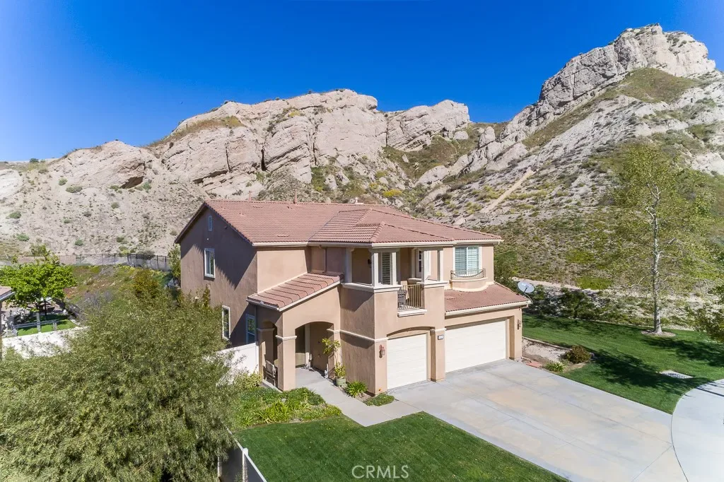 Probate sale subject to court approval. Beautifully situated at the end of a cul-de-sac in Stetson Ranch, beneath dramatic hills and rock formations, 15503 Megan Drive offers a rare combination of scenic setting, privacy, and generous living space in Canyon Country. Built in 2010, this well-maintained 3,619 sq. ft. home features 5 bedrooms and 4 full bathrooms, including a desirable ground-level bedroom and full bath, along with a 3-car garage. The entry opens to a great room design with the formal living room flowing into the formal dining area at the rear of the home. Also at the rear, the inviting family room features luxury plank vinyl flooring, a traditional fireplace, and opens to the kitchen with a large granite island, built-in oven and microwave, abundant cabinetry, pantry, and sunny breakfast nook. Upstairs, an airy loft adds flexible living space and opens to a front balcony that enhances the home’s architectural appeal and hillside setting. The spacious primary suite offers two large walk-in closets, dual vanities, a garden tub, separate shower, and its own fireplace. Two secondary bedrooms share a Jack and Jill bath, while a junior suite with private bath is set apart at the opposite end of the upper level. The upstairs laundry room includes space for a washer and gas dryer, along with a counter and additional cabinetry for convenience and storage. With its attractive curb appeal, functional floor plan, and memorable natural backdrop, this is a rare opportunity to purchase a beautiful home in a distinctive Stetson Ranch setting.