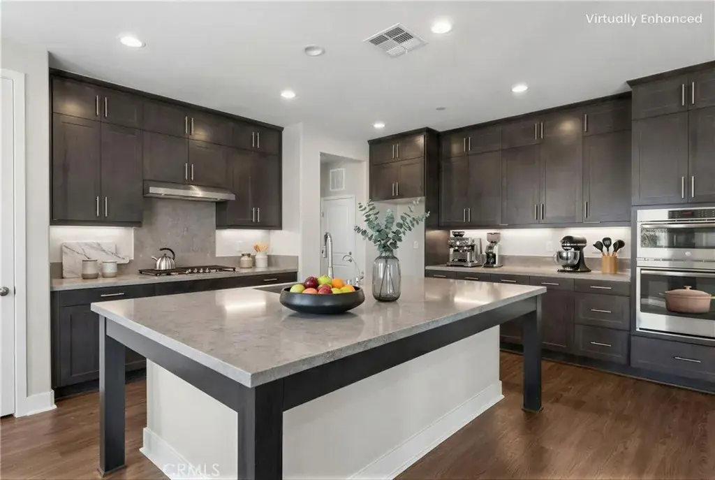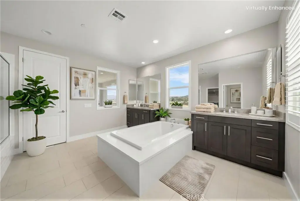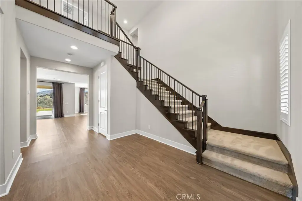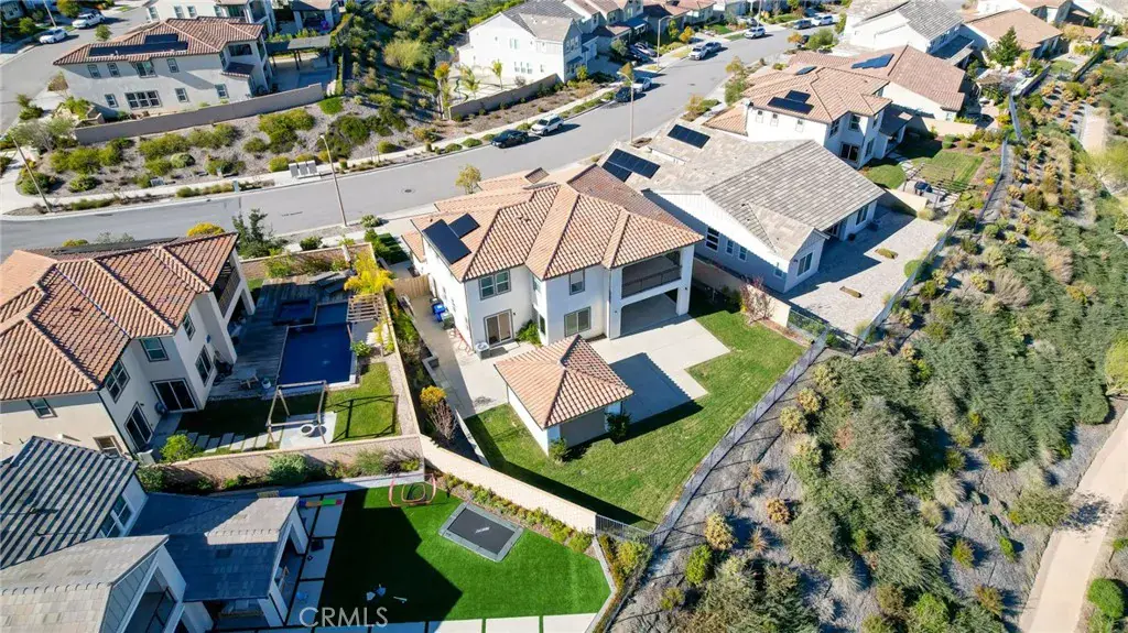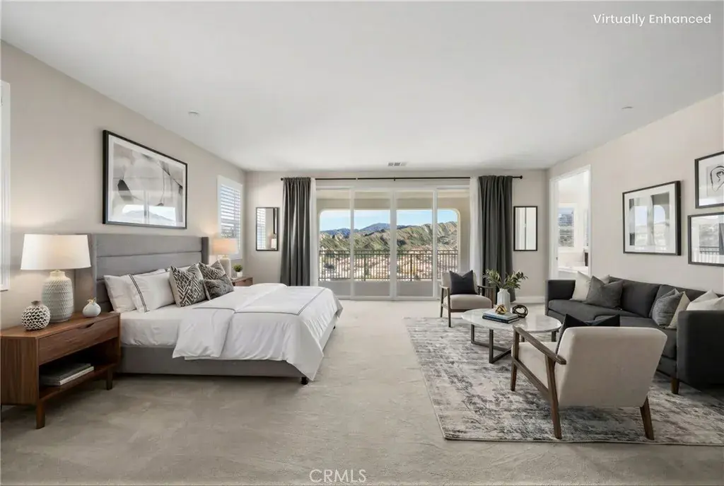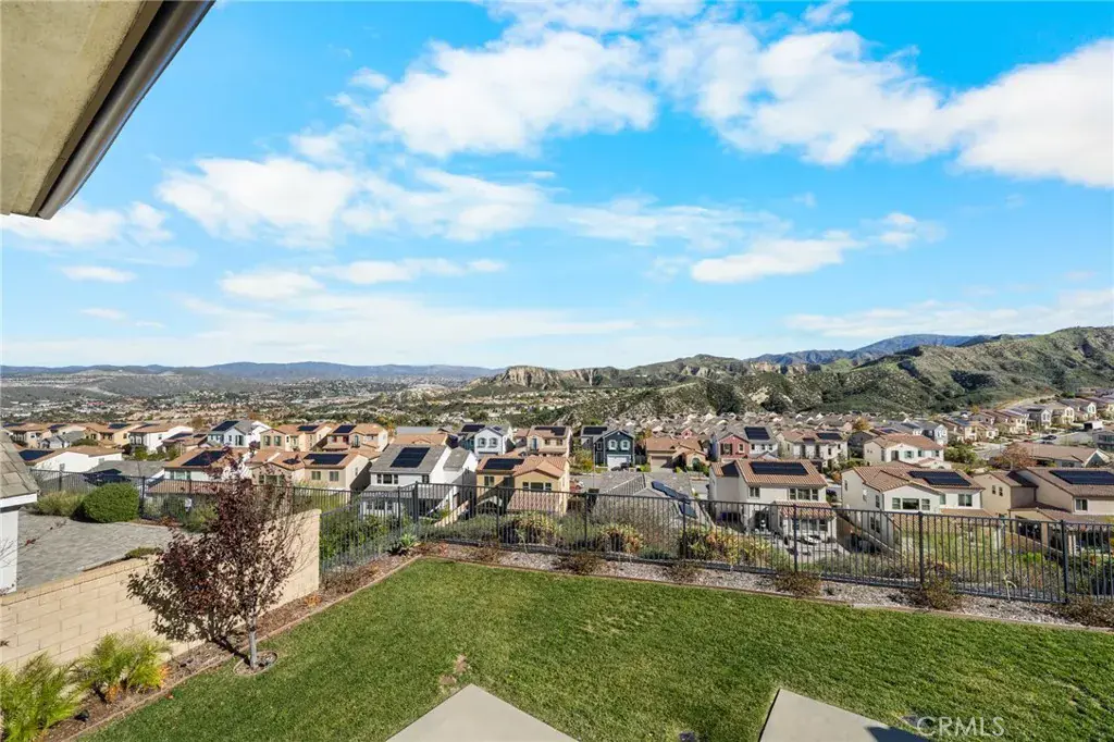 PRICE REDUCED for a Quick Sale! Breathtaking panoramic views and upgrades surpassing model home! Situated on a highly desirable premium lot. Welcome to 25110 Cherry Ridge Dr, a two-story single-family home nestled in the highly desirable Aliento gated community in Santa Clarita. Built in 2019, this modern residence offers the perfect blend of luxury, comfort, & contemporary design. One of this home’s standout features is ITS PEACEFUL CITY & MOUNTAIN VIEWS, providing a serene & picturesque backdrop from both inside the home & outdoor living spaces. Whether you’re enjoying your morning coffee or winding down at sunset, the views elevate the overall living experience. Boasting 4 bedrooms & 3.5 baths (one bedroom with en suite bathroom is downstairs), huge loft & office, this 3,442 sq. ft. home sits on an expansive 9,662 sq ft lot. The floor plan is open and airy with high quality finishes throughout. Upstairs, a luxurious primary suite & covered balcony offers plenty of privacy and comfort. Enjoy stunning city and mountain views from the living room, dining room & bedrooms. Modern features are a tankless water heater, fully paid solar panels, and wifi-enabled thermostats, garage door opener, front door lock, and light switches (living & dining). Interior upgrades are full-height stacked kitchen cabinets w/ stained solid wood doors and soft-close cabinet hinges; 15-foot stacked sliding doors in living room; 12-foot French doors in primary bedroom; sliding door in dining room; engineered quartz countertops, plantation shutters by Norman with rod-less design; ceiling speakers in living room & speaker pre-wire in loft (rear surround only); stained solid wood handrail & iron balusters; vinyl plank flooring downstairs; Carpeting upstairs & in staircase; upgraded tile flooring in bathrooms & laundry; and recessed lighting in living room, kitchen, den, and loft. Exterior upgrades are: covered sunroom outside living room; covered balcony outside primary bedroom; covered pavilion in the backyard for year-round outdoor entertaining; landscaped yard, patio, and sprinkler/dripper system. Convenient access to shopping, dining, parks, and major commuter routes. Community pool, recreation center, and gym. Close to top rated local schools, Costco, Stater Brothers, Lowe’s, Trader Joe’s, Toppers, Edwards Cinema & excellent restaurant and entertainment options. Close to 14 freeway. This property is an incredible opportunity to own a beautifully maintained, move-in ready home.