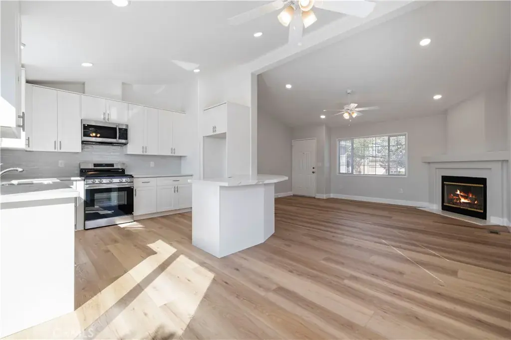 Beautifully upgraded 2 bedroom, 2 bath home showcasing modern finishes and a bright, open layout. The remodeled kitchen features white soft-closing cabinets and drawers, quartz countertops, and stainless steel appliances. Vinyl flooring flows throughout the home, complementing the fresh, contemporary feel. Both bathrooms have been tastefully updated with new vanities, quartz countertops, and stylish fixtures, while the primary suite offers a custom tiled walk-in shower. Additional upgrades include dual-paned windows and slider, recessed lighting, and more.