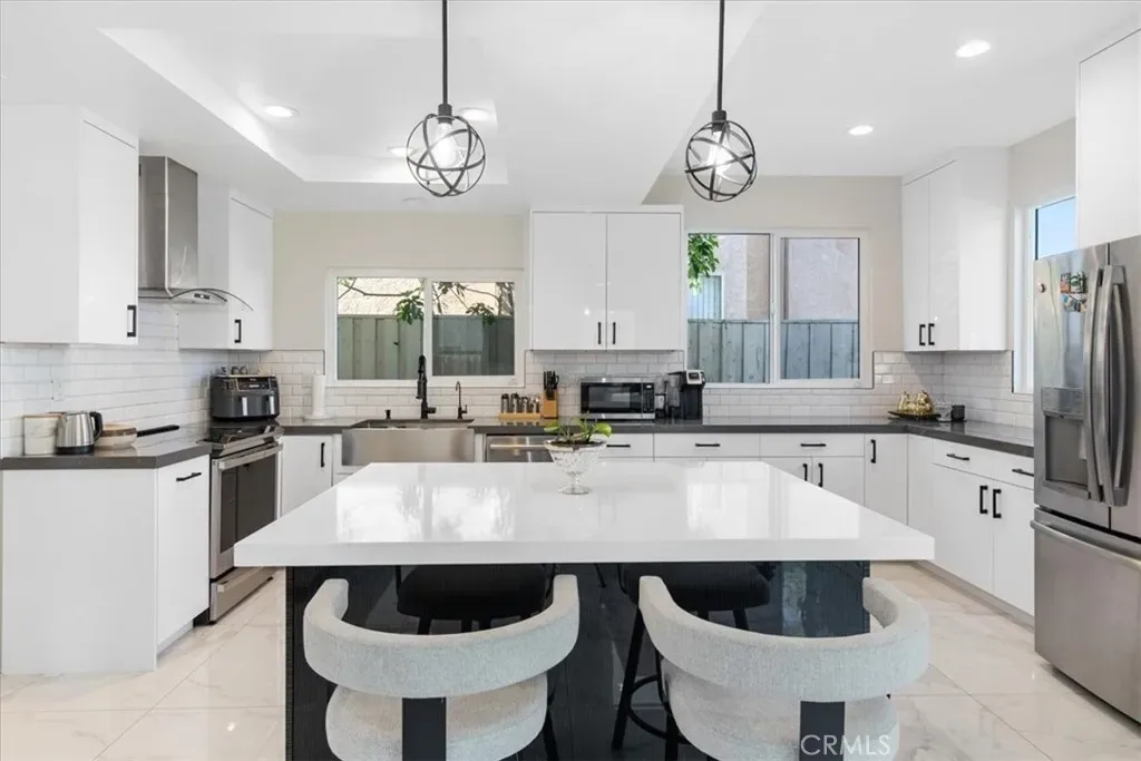 Welcome to 18510 Himalayan Ct, a beautifully remodeled 4-bedroom, 2.5-bathroom view home nestled in the tranquil hills of Canyon Country, Santa Clarita. Spanning 2,526 square feet, this residence offers a harmonious blend of modern luxury and serene living with amazing sunset views. As you step through the custom wrought iron door, you’re greeted by a spacious living room featuring soaring two-story ceilings, a cozy fireplace, a wet bar, and an abundance of natural light. The formal dining area seamlessly connects to a large family room, which boasts a second modern fireplace and opens to a chef’s kitchen equipped with a large center island, top-of-the-line quartz countertops, soft-close cabinets, and stainless steel appliances. The primary suite is a private retreat, offering a generous walk-in closet and a large balcony with panoramic views. The ensuite bathroom features a luxurious tub and a stand-up shower adorned with floor-to-ceiling porcelain tile. Additional amenities include updated dual-pane windows and sliding doors, a tankless water heater, upgraded plumbing, security cameras, and a three-car attached garage with direct access. Situated in the sought-after Shangri-La community, this home is designed for both comfort and entertaining, especially with its beautiful backyard garden. Beyond the property, Canyon Country offers a wealth of attractions and activities. Enjoy outdoor adventures at Canyon Country Park, which features inclusive playgrounds, fitness zones, and picnic areas. For thrill-seekers, Six Flags Magic Mountain and Hurricane Harbor are just a short drive away. Nature enthusiasts will appreciate the nearby Placerita Canyon Nature Center and the extensive Santa Clara River Trail for hiking and biking. Families can also explore the educational exhibits at the William S. Hart Museum & Ranch. Don’t miss the opportunity to own this exceptional home in a vibrant community. Contact me today to schedule a private showing and experience all that 18510 Himalayan Ct has to offer.