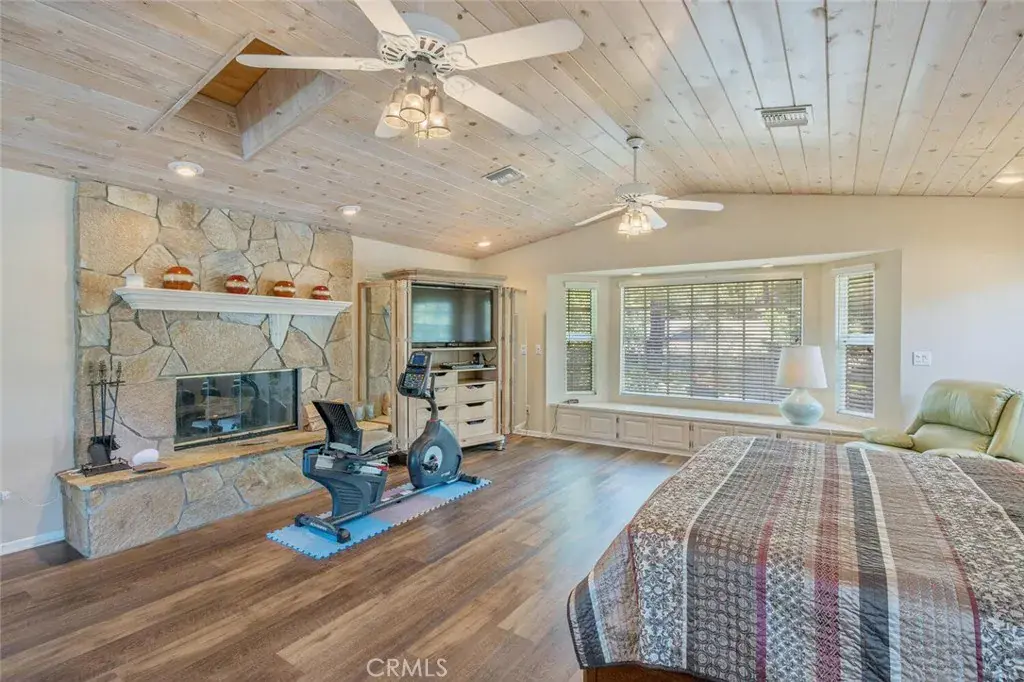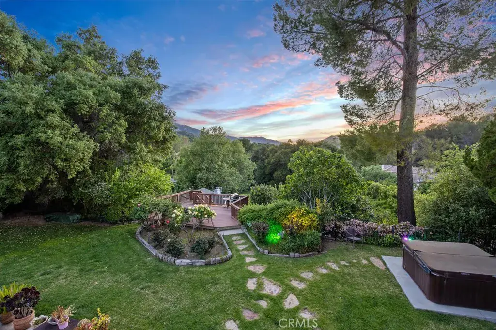 Spectacular 5 bedroom 3.75 Bath PLUS Pool Home/ ADU on a 3 Tiered, Private View Lot with Additional Lower Lot Access and Dual Primary Bedrooms! Tucked away on a quiet, tree-lined culdesac street, this tastefully upgraded and truly turnkey home offers the perfect blend of comfort, functionality and entertaining space with tons of privacy and a huge 50×20 Swimming pool with waterfall and waterslide! This initial single story 4 bed 2 bath design has been professionally expanded by adding an expansive additional primary suite upstairs with T&G vaulted ceilings, a cozy slate fireplace and luxurious en suite bath! This second primary bedroom now boasts its own sliding door access to the deck and picturesque Mountain Views with staircase leading to the above ground spa! On the main floor, you will enjoy comfortable and convenient living with high ceilings, remodeled kitchen, including stainless steel, built-in refrigerator, double oven, sit up breakfast bar and a charming family room with oversized picture window, including a built-in pet door for convenience! The main floor has 4 bedrooms and 2 full baths! This truly feels like a mountain getaway just minutes from the city! The main upper lot offers tranquil safety for children and pets to play! Step down the epoxy coated staircase to reach the second level which provides ample space to create incredible memories! A beautiful 480 sqft pool house complete with Murphy bed, half bath and kitchenette perfect for long term guests or an in-law suite with beautiful T&G ceilings and french doors overlooking the sparkling swimming pool, spa waterslide and garden area! There is even a half basketball court here as well! A few more steps down you’ll reach the lower lot which is an excellent space for soccer games, additional parking or even an additional living or stored space! This lot can also be accessed around Sand Canyon Road is Complete with a rolling gate for vehicle access! This is a unique property that you will cherish for yours to come!