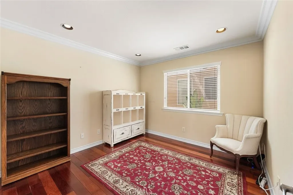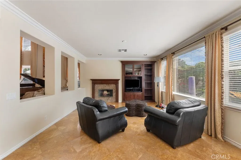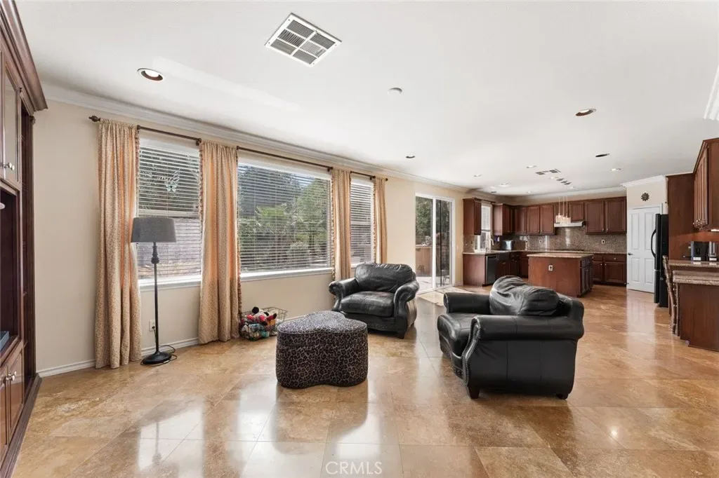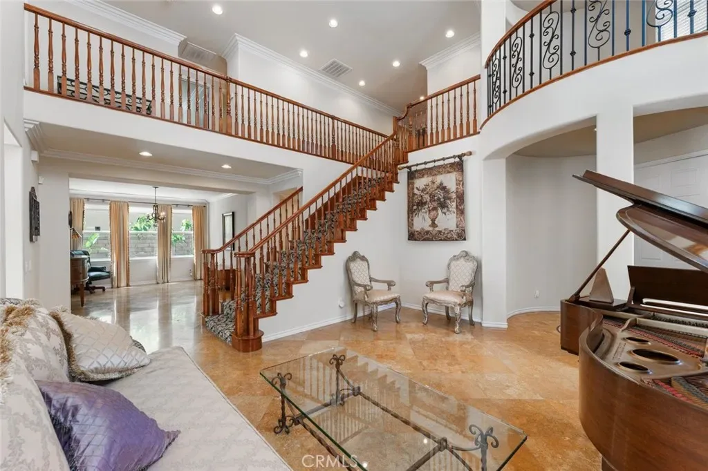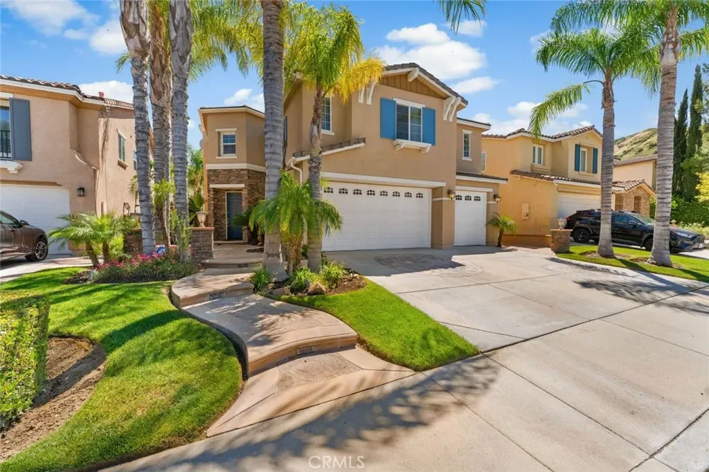 Welcome to this expansive 5-bedroom 4-bathroom home boasting over 3,450 sq ft of thoughtfully designed living space located in the highly sought-after Fair Oaks community of Santa Clarita. Home features elegant entry with custom Onyx & Stone medallion inlay and 24 x 24 travertine stone flooring downstairs and mahogany wood flooring upstairs. Enjoy an open concept floor plan with spacious living and dining areas, soaring high ceilings and abundant natural light throughout. Spacious Master suite and master bath with two walk-in closets, dual sinks, oval soaking tub and separate shower. Home also features a beautiful kitchen with granite counters and a built-in desk area. Other features include a custom stair handrail, crown molding throughout and a separate laundry room upstairs. The backyard offers gorgeous landscaping, a fountain, stamped concrete and a custom BBQ with cook top perfect for entertaining. Private backyard with no rear neighbors. Walking distance to the pool and rec area. Close proximity to the freeway, parks, shopping and restaurants. Very low HOA!