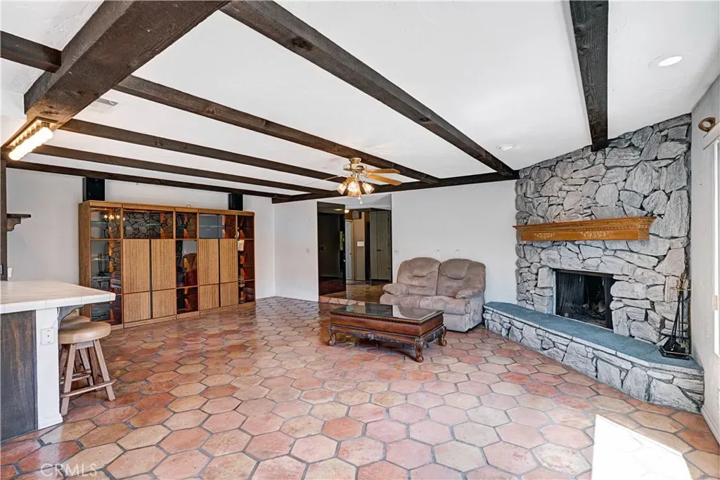 Welcome to the exclusive gated community of Canyon Lake—an incredible investor special and rare opportunity to enjoy lake living! This single-story 2-bedroom, 2-bath home features dual primary suites, each with its own ensuite bathroom. The open floor plan showcases wood beam ceilings, a spacious living area with a beautiful rock fireplace, and a kitchen that opens to the family room. Additional highlights include newer windows, an indoor laundry room, and a large pantry. Enjoy the covered patio and access to a shared dock. Above the garage is an additional room with potential for an ADU, office, or guest space. Possible RV parking adds even more flexibility.Great potential in a prime location—bring your vision and make it your own!