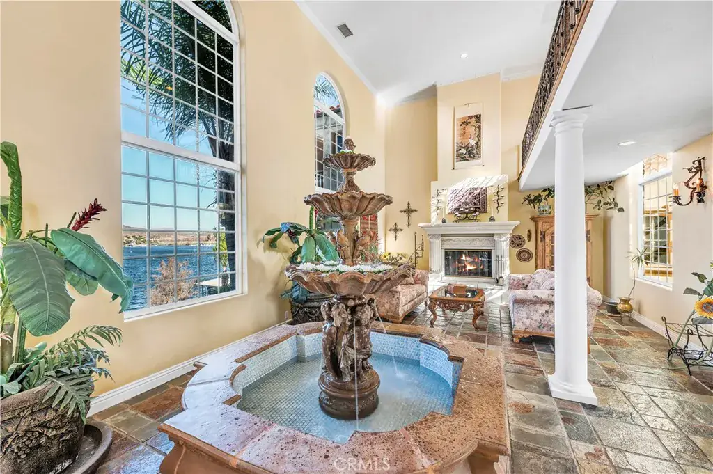 Enter the home through the custom solid wood double entry doors into the foyer boasting 22’ ceilings with floor to ceiling picture windows and large fountain setting the tone to tranquility. Main level offers 1 full bedroom with private bathroom, den, living room, kitchen, laundry/ Mud room, 1/2 bath and 2 bedroom 2 bathroom apartment with private entrance. Upstairs the estate is split with the Master wing sitting on one side of the home boasting a large sitting area with fireplace , bathroom with soaking tub, steam shower, walk in closet with built ins throughout, and private covered deck to take in the Panoramic views of the entire lake. Located on the opposite wing you will find 3 additional bedrooms with 2 of them having private bathrooms, large game room and full length covered patio as well mirroring the Master. Down on the pool level is a lockout studio apartment with a kitchenette and bathroom and additional finished storage rooms under the home.