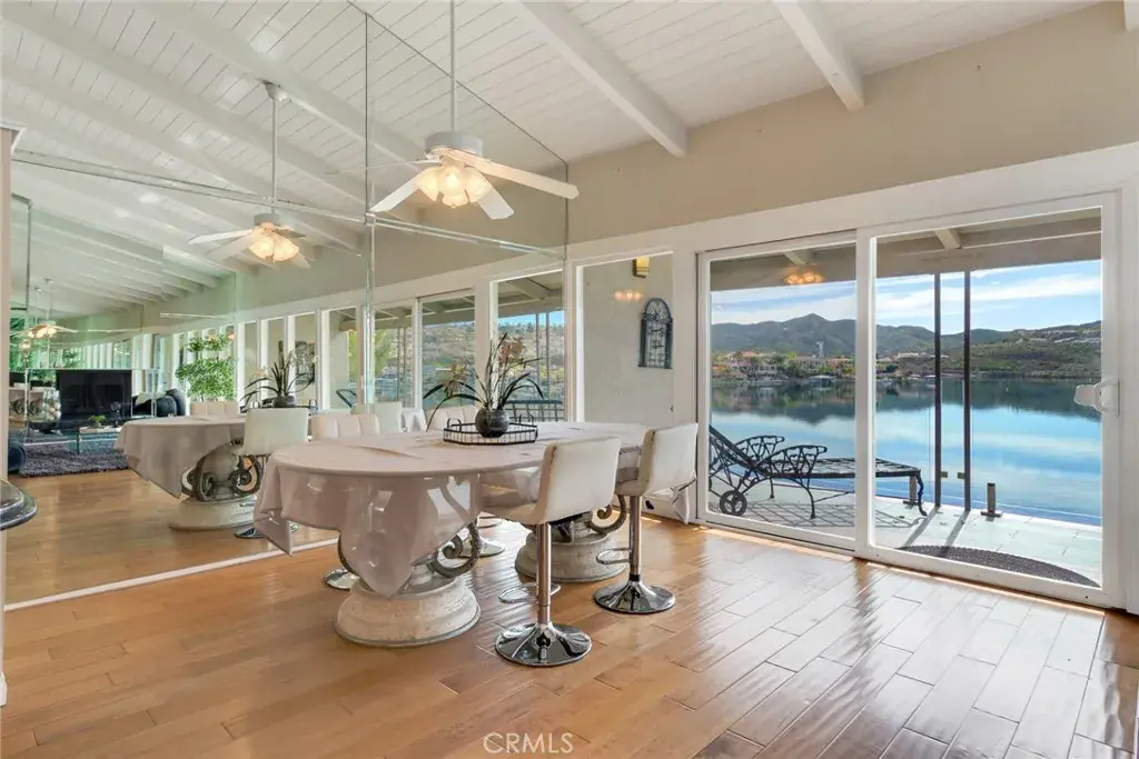 Welcome to 22196 Treasure Island Dr, an exceptional opportunity to embrace the coveted lakefront lifestyle in prestigious Treasure Island — a private, gated community within the gates of Canyon Lake, where every day feels like a vacation. This rare residence (one of 36) offers unmatched water-centric living on the main lake, complete with panoramic views and effortless access to boating, swimming, fishing, paddleboarding, and all the outdoor activities you crave. Highly sought after upper, end-unit with vaulted, beamed ceilings and open floorplan. Gourmet kitchen with generous cabinetry, granite countertops and an oversized island with counter seating. Living room has floating fireplace and windows expanding the entire west wall leading to the balcony which is one of a handful of units in the complex with a glass enclosure to fully enjoy unobstructed views. Main bedroom with vaulted ceilings and en suite bathroom and dual sinks. Indoor laundry and coveted direct garage access featuring overhead storage with pulldown ladder access. Treasure Island amenities include, pool/spa, clubhouse, BBQ and picnic area, additional assigned parking space, plus boat slip #14, water/trash/landscaping. Canyon Lake amenities include: 383-acre private lake, fishing, 20 beaches and parks, fireworks, tennis, pickleball, Equestrian Center, 18-hole golf course, outdoor concerts. This home provides a lifestyle like no other.