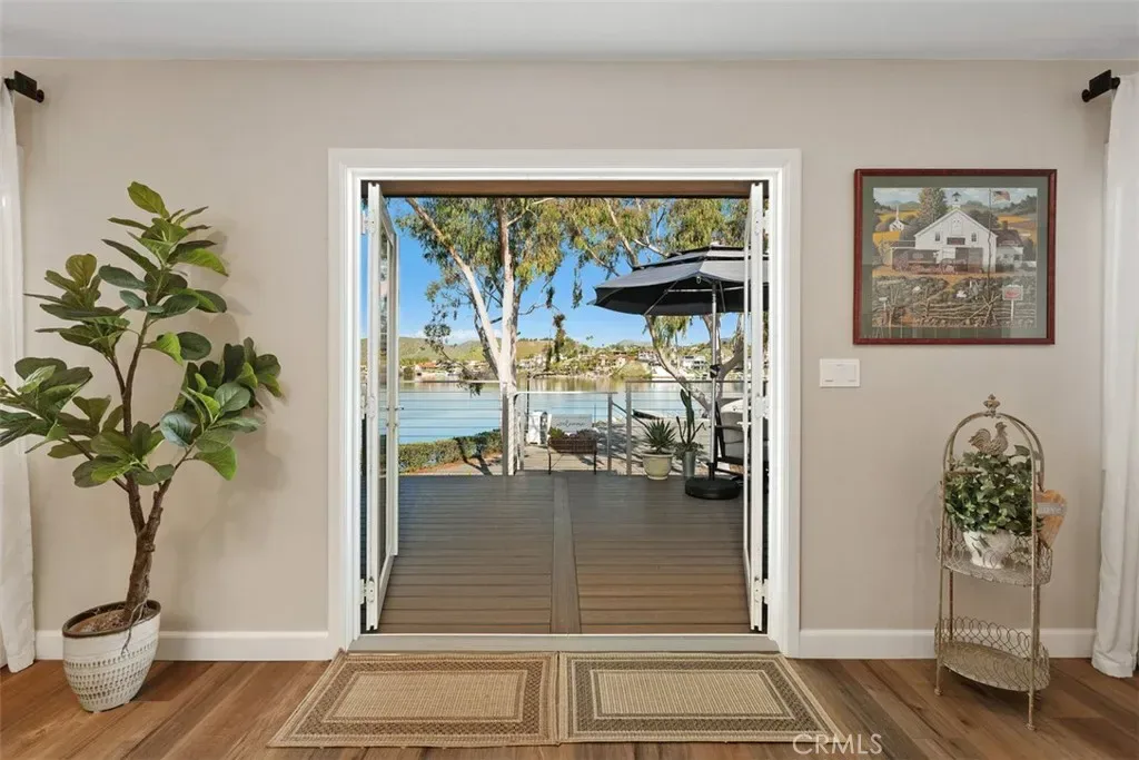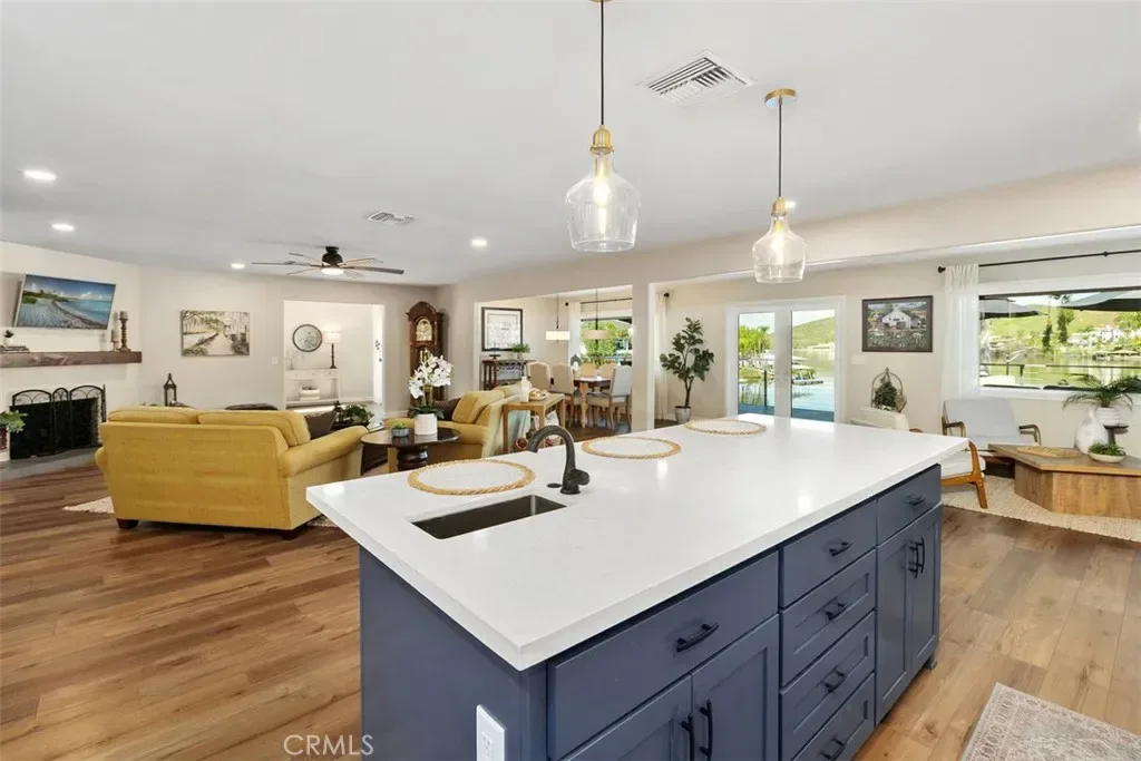 PRICE REDUCED & MOVE IN READY! You have found your DREAM HOME! Welcome to 22344 Whirlaway Ct., Canyon Lake, CA. a Pristine, MOVE-IN-READY Waterfront Retreat! Nestled in one of the most desirable locations in the exclusive gated community of Canyon Lake, this stunning waterfront home offers the ultimate lakeside lifestyle. No detail has been missed on this home which has been fully renovated over the past 2 yrs! Situated on main lake with breathtaking views, this 3-bedroom, 3-bathroom Single Story with spacious open floor plan and abundance of space is designed for comfort, elegance, and entertainment. Key Features: Prime Waterfront Location, direct lake access from your own private dock within a protected cove. This open-concept floor plan is designed to maximize natural light and showcase lake views from multiple vantage points. The family room features LVP flooring (throughout the home), automated window coverings, and a cozy fireplace, for relaxation. Offering 2 Luxurious Primary Bedrooms, both with en suite bathrooms & dual sink vanities plus a separate generous bedroom (currently used as an office). The main primary bedroom is a true retreat, with indulgent tub, a step in shower, two large closets, one is a walk-in. There is a large interior laundry/craft room with sink & cabinetry. The Gourmet Kitchen is designed for both functionality and style and features custom shaker cabinets, quartz counters, stainless appliances a professional style Italian range, custom Alder finish pantry, a breakfast bar, and separate dining area off living room. A 2-Car Attached Garage offers ample space for vehicles, storage, or even a home workshop. Step outside to the expansive deck, ideal for alfresco dining, barbecues, and enjoying mesmerizing views over the water and the private bocce/sport court. A truly efficient home offering solar energy, low maintenance landscape with drip system, newer high efficiency doors and windows, newer concrete roof (2023)… the list goes on and on! Please make sure to see the upgrades in the supplement section. This property is truly Un-matchable! As part of the highly sought-after Canyon Lake gated community, enjoy access to a private lake, a clubhouse, a swimming pool, tennis and pickleball courts, an equestrian center, golf course, private restaurant, private campground, and over 12 parks. If you’re looking for a full-time residence or a weekend retreat, this home offers the perfect blend of luxury, relaxation, and adventure.