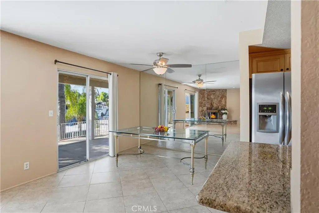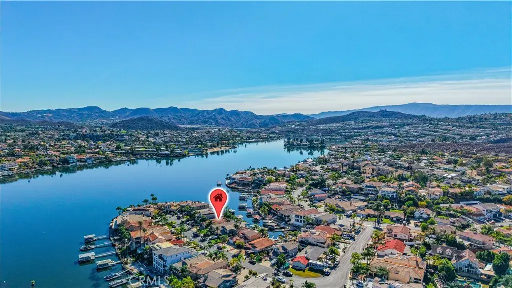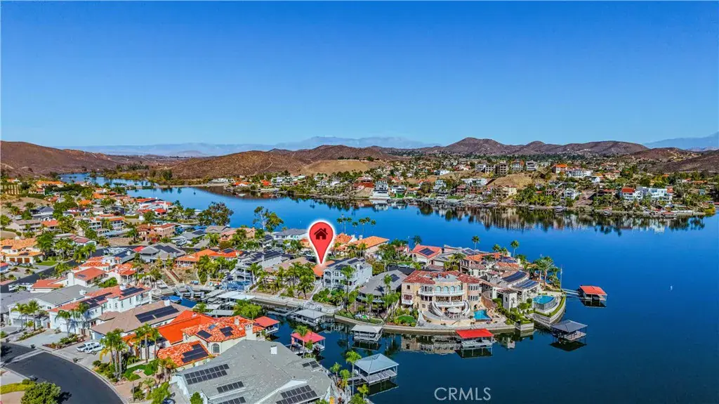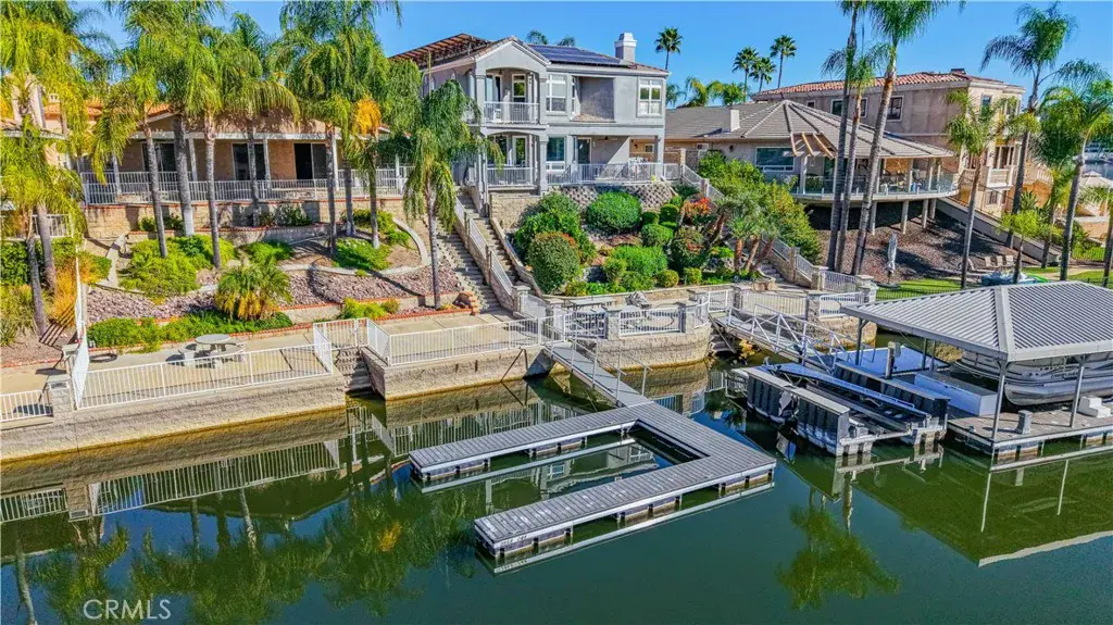 Main Lake Waterfront in the Exclusive Gated Community of Canyon Lake! Welcome to this inviting single story lakefront home featuring an expansive entertainers covered patio overlooking the water plus a large concrete deck, perfect for gatherings, sunbathing, or outdoor dining. Enjoy your newer U-Dock, ready for your boat and lake toys, just step outside and be on the lake in seconds. The home offers a comfortable and open layout with views from the spacious living area. The kitchen has tasteful upgrades like granite counter tops, an electric cooktop, stainless steel refrigerator, and warm maple cabinetry. Enjoy comfortable living with a cozy wood burning fireplace in the family room. Plantation shutters and ceiling fans thru-out the home The double door entry and tile flooring add an elegant touch. The generous sized bedrooms provide plenty of space and flexibility. The front and rear yard landscape is designed with low maintenance landscaping and palm trees, offering great curb appeal with minimal upkeep! Move in ready and full of charm. Live the resort lifestyle with boating, fishing, private beaches, clubhouse, golf, pickleball, equestrian center, and 24 hour guarded gates.