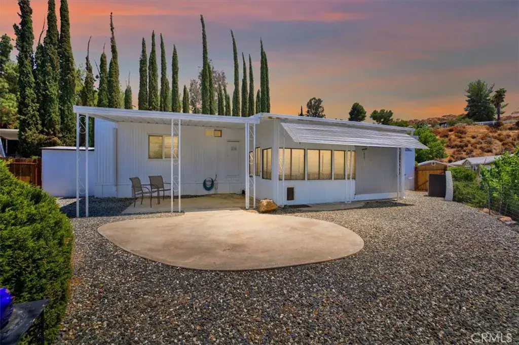 Have you been looking for affordable living in Southern California’s premier, gated, waterfront community of Canyon Lake? Well look no further! This two bed, two bath home has plenty of features with a favorite being views of the golf course, surrounding community, local mountains, killer sunsets and on owned NOT leased land!! Welcome to the meticulously maintained 22780 Skylink Drive!! Upon entering you’ll notice your living room offers an open and bright layout with updated wood plank vinyl flooring, 5″ baseboards, and a flow directly into your kitchen and dining area. The kitchen offers newer appliances, 5 burner gas cooktop with grill in the middle, white oak cabinets, subway backsplash, a raised bar peninsula seating area, and full extension roll out shelves in almost all cabinets that offer ample storage! Your master bedroom hosts a healthy footprint with ample closet space, new vinyl flooring and is located adjacent to the master bath with gorgeous counters and updated porcelain tile shower stall with grab bars for easy access and freshly painted cabinets! The spare bedroom has its own ensuite half bath with wainscoting, wood plank vinyl flooring and plenty of closet space! Off the main living area and kitchen is your living room offering plenty of natural light and fresh paint throughout. Other amenities include four new mini split AC system, new energy efficient 40 gal. water heater, indoor laundry, fenced rear yard area perfect for animals, covered aluminum patio in the rear, new rock/irrigation system/landscape, 6×10 storage shed, new mobile home piers under home for added support,raised 6 panel interior doors, covered parking with ample driveway space for an RV/boat/trailer and fresh exterior paint! Canyon Lake living offers a low 1.1% taxbase, 400 acre waterski/fishing lake, 16 parks most with beaches and playsets, basketball, baseball, tennis & pickleball, equestrian center, 18 hole golf