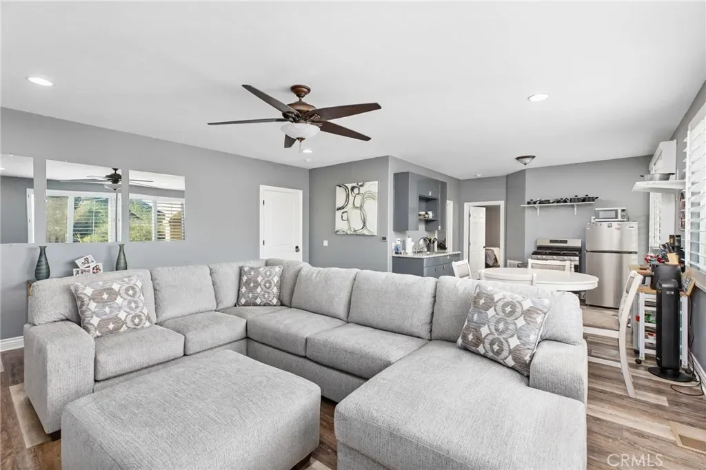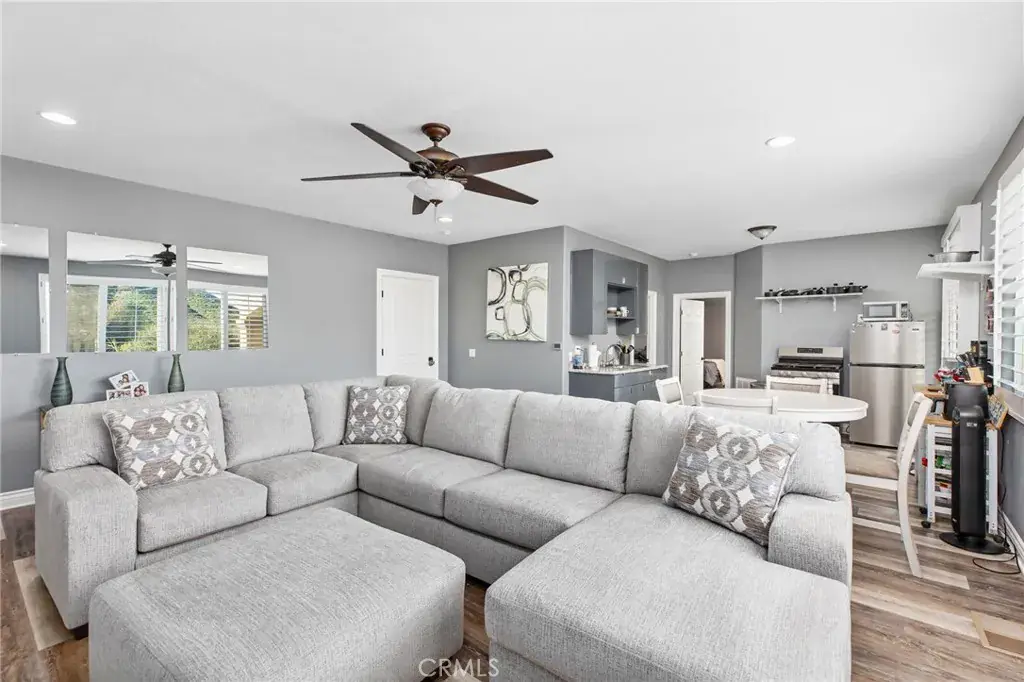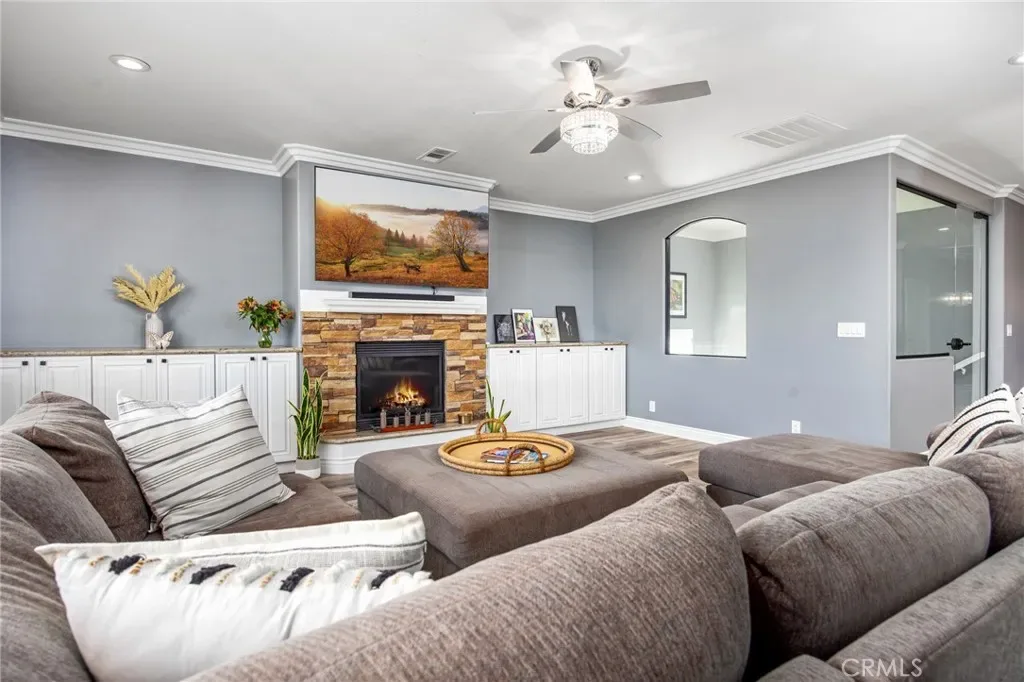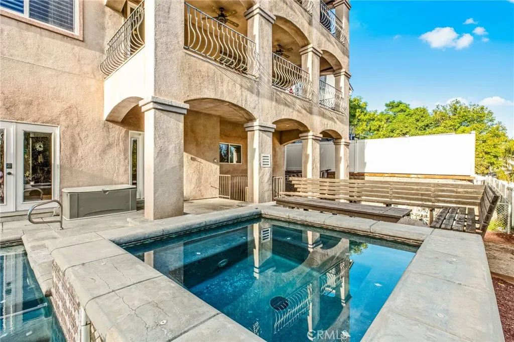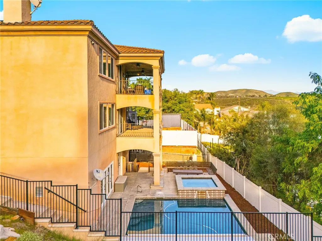 Stunning multi-level pool and spa home offering panoramic hill views, built-in income potential, and extensive upgrades throughout. The property features a fully equipped ADU with private entrance, kitchenette with refrigerator, oven/range, sink, plus in-unit stacked washer and dryer. The ADU is currently rented and generating income. Additional highlights include paid solar, a new energy-efficient HVAC system, Wi-Fi–enabled pool heater, and 50-amp EV charging in the garage. A dramatic entry welcomes you to the main level with an open-concept layout ideal for modern living. The gourmet kitchen opens to the living and dining areas and features stainless steel appliances, upgraded cabinetry, a walk-in pantry, and granite countertops. The primary suite, two additional bedrooms, two full bathrooms, and a laundry room are all conveniently located on the main level. Balconies off both the main living area and primary bedroom capture sweeping hill views. The second level hosts the private ADU with its own entrance. The lower level offers a private office and a game or pool room with kitchenette. Large French doors lead to a private backyard oasis featuring a sparkling pool and spa—perfect for entertaining, relaxing, or enjoying the views. With city-approved plans already in place for an additional bedroom and bathroom, this home offers incredible flexibility to expand, multi generational living, increase value, or customize to your vision. A rare opportunity that seamlessly blends lifestyle, luxury, and income potential in one exceptional property.