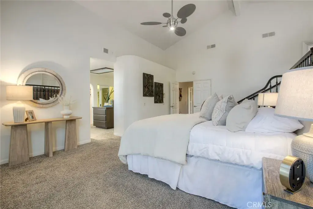 Enjoy the Southern California lifestyle in your backyard oasis — complete with a sparkling pool and spa, lush palm trees, and panoramic fairway views. The oversized, deep garage provides plenty of room for vehicles and is large enough to store a boat and golf cart… a perfect fit for life in this lake and golf community.