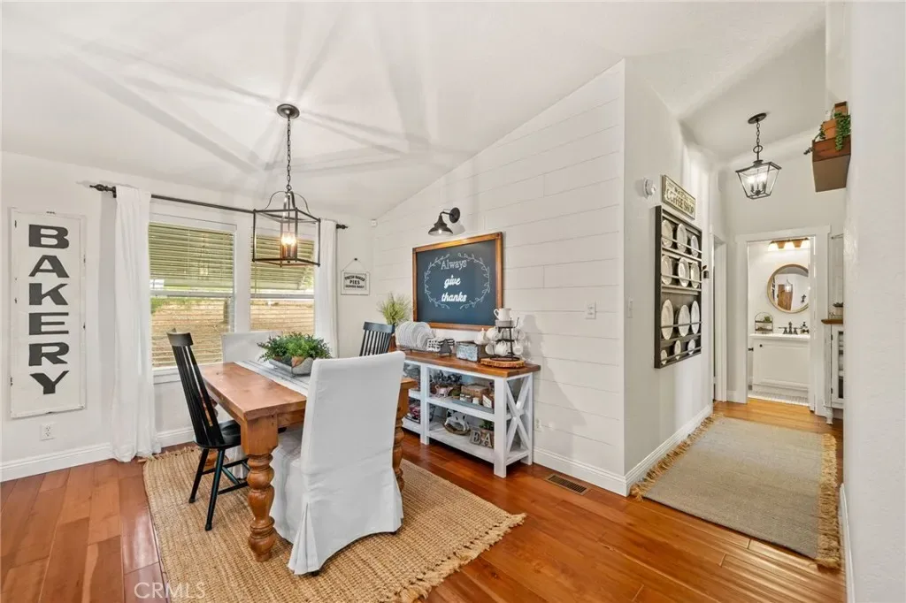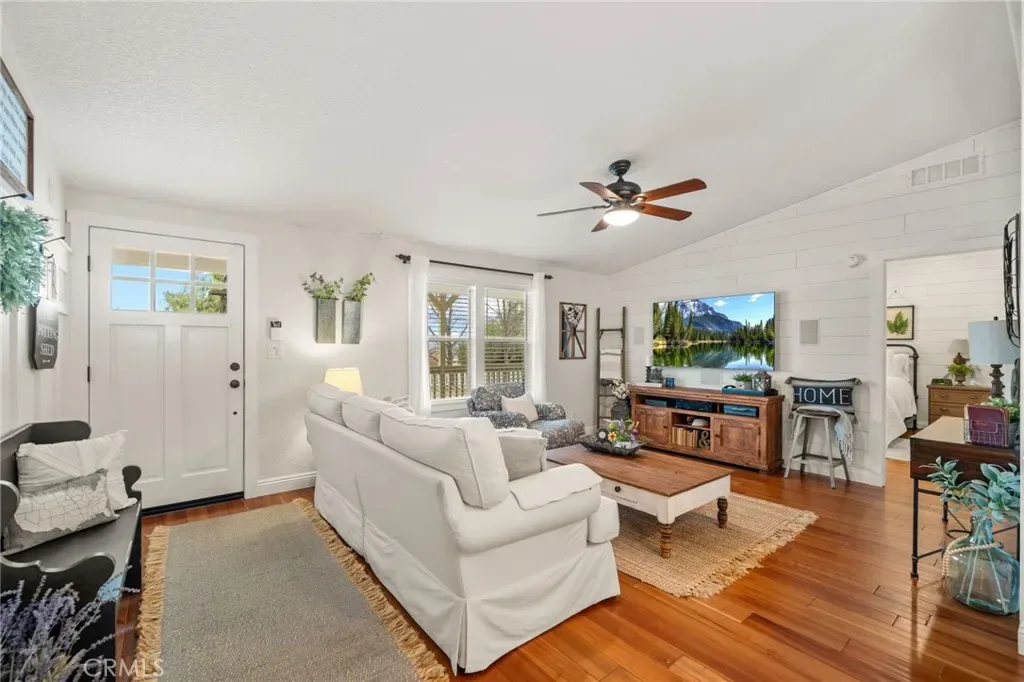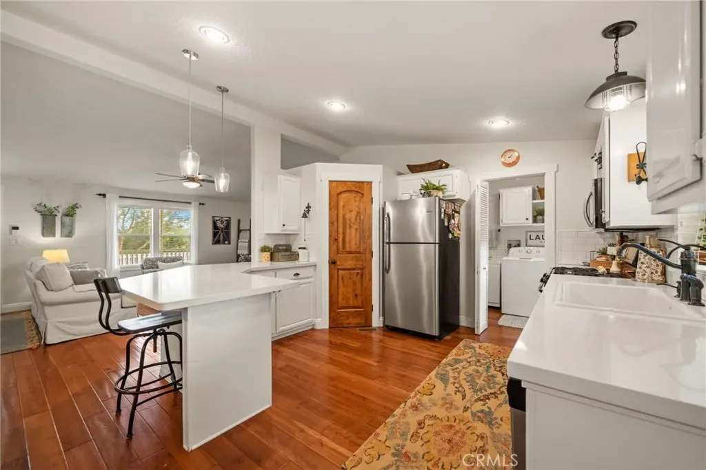 Pride of ownership shines in this meticulously maintained farmhouse style, permanent foundation home. The extra unique value in this opportunity with almost 2 acres and zoned R-A could possibly open up creative potential for buyers looking to expand with ADU or partial garage conversion, or adding structures etc. Custom upgrades include vaulted ceilings, real cherrywood flooring, recessed lighting, ceiling fans, shiplap and board-and-batten accents, elegant quartz kitchen countertops, and a costly 4-stage reverse osmosis filtration included. More upgrades include a 200-amp electrical panel, newer water heater, and an energy saving whole house fan. The walk-in pantry features motion lighting and extra outlets, and all appliances including refrigerator included in purchase. The utility sink in the separated laundry room off the kitchen adds convenience, and the washer and dryer are bonus gifts. Two of four bedrooms boast walk-in closets too! Step outside to an expansive front porch overlooking nearly 2 acres of beautifully cared-for land. The property also offers two oversized detached 2-car garages (one ultra-high for lifted vehicles) with storage, workspace, utility sinks, and separate sub panels, plus a soundproof insulated music room and office between them. All structures are complete with rain gutters for property care, security lighting on timers, and an electric gated front fence with indoor button-controlled access. Fencing includes 3-rail wood, picket, and cross-fenced areas with a secure dog run, and auto sprinklers and drip systems make gardening effortless. Outdoor highlights include a built-in rock fire pit, vintage windmill, fruit trees, and a charming walking bridge over the natural riverbed irrigation. This almost 2-acre property is zoned for horses and agriculture. Perfect country living perks, just minutes from stores and freeways. A true Oasis blending rural charm with city convenience.