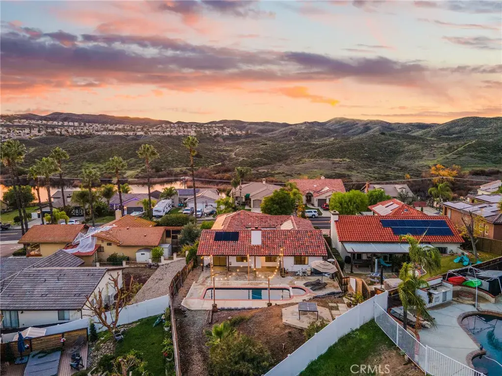 Owned solar, Lake views, room for toys and single story! Located on the north side of Southern California’s premier, gated, waterfront community of Canyon Lake this single story stunner pool home is sure not to disappoint! If views are what you’re interested in than look no further as this home capitalizes on 180 degrees of surrounding hills and the main lake/beach!! Upon entry your met with vaulted ceilings, a classy white washed brick fireplace and a massive open layout for the family/dining area. Enjoy new LVP floors throughout along with fresh interior paint! Your kitchen boasts more than ample cabinet space with granite counters, double ovens, recessed LED lighting and even lake views from your kitchen window! The master bedroom is well appointed with tons of natural light, a slider to your pool area and an oversized ceiling fan. Your recently updated master bath offers a duel sink vanity, walk in closet, separate toilet room and large shower with separate soaking tub. Both spare bedrooms have a huge footprint and share a Jack and Jill bathroom. No need to worry about guests as they can use the 3rd bathroom located just off the main living area complete with feature wall and stylish mid-century modern mirror and light fixture. There’s more natural light in this house than you can imagine with ample dual pane, tinted windows throughout allowing you to capitalize on views from various areas. Enjoy entertaining in your backyard with pool/jacuzzi, plenty of room for entertaining, courtyard in the entry way and an upper pad in the back that capitalizes on unobstructed views of the surrounding hills, community and main lake! Do you have toys? No need to worry about storage here as the 3 car garage offers 12′ high ceilings allowing for plenty of room for multiple car lifts and room to clear a 32′ motorhome/trailer or easily fit a boat in the driveway. Canyon Lake offers offers a low 1.1% tax base with no Mello Roos bonds, 384 acre waterski/fishing lake, 16 parks most with beaches and playsets, basketball courts, baseball fields, tennis & pickle ball courts, equestrian center, 18 hole golf course, pools, dog park,has golf cart friendly streets, slalom course, ski jump, restaurants, community events and so much more!!! Live life on vacation in Canyon Lake!
