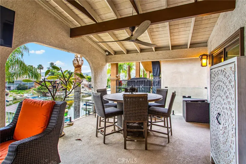 Welcome to true single-story waterfront living in the heart of Canyon Lake — where breathtaking lake views, modern upgrades, and effortless indoor-outdoor living come together in perfect harmony. Situated on a premier water-front lot, this beautifully updated 3-bedroom, 2-bath home offers panoramic lake views from the kitchen, dining, and living areas, all framed by brand-new French doors that open to a stunning rear deck — the ultimate space for relaxing, entertaining, and soaking in the Canyon Lake lifestyle. The open-concept layout is light, bright, and welcoming, featuring new flooring throughout the main living spaces, new carpet in all bedrooms, all-new kitchen appliances, and a fully remodeled primary bathroom. Step outside onto the expansive rear deck showcasing vaulted ceilings, brand-new decking, and sleek glass railings, creating unobstructed sightlines to the water and endless sunset views. This home has been extensively upgraded with 43 paid-off solar panels, resulting in virtually zero electric bills, along with a new roof, new AC system including heat pump and HVAC unit, new Andersen windows, and a new mini-split system servicing the approx. 500 sq ft bonus room under the deck — perfect for a home office, gym, game room, or guest retreat. Additional highlights include new front landscaping, a 30-amp RV plug conveniently located by the driveway, and thoughtful improvements throughout that provide both comfort and efficiency. Canyon Lake offers offers a low 1.1% tax base with no Mello Roos bonds, 384 acre waterski/fishing lake, 16 parks most with beaches and playsets, basketball courts, baseball fields, tennis & pickle ball courts, equestrian center, 18 hole golf course, pools, dog park,has golf cart friendly streets, slalom course, ski jump, restaurants, community events and so much more!!! Live life on vacation in Canyon Lake!
