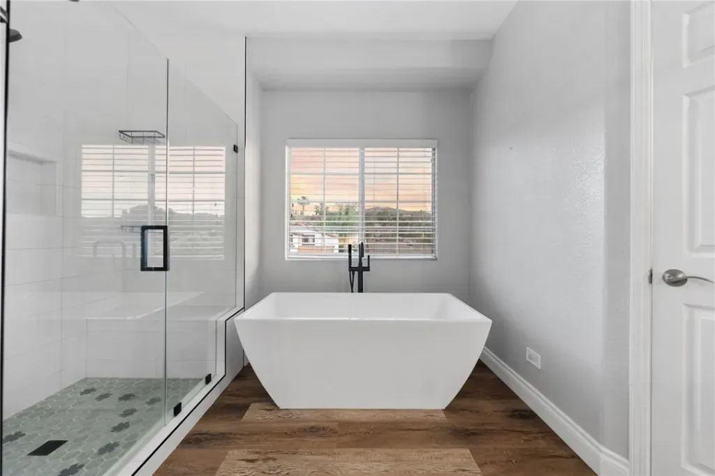 Upstairs, you’ll find three additional bathrooms, including a fully remodeled primary bathroom complete with a freestanding soaking tub, oversized walk-in glass shower, white cabinetry, shiplap accent walls, and modern black finishes. No more lugging your laundry downstairs, this home features your very own laundry chute!
